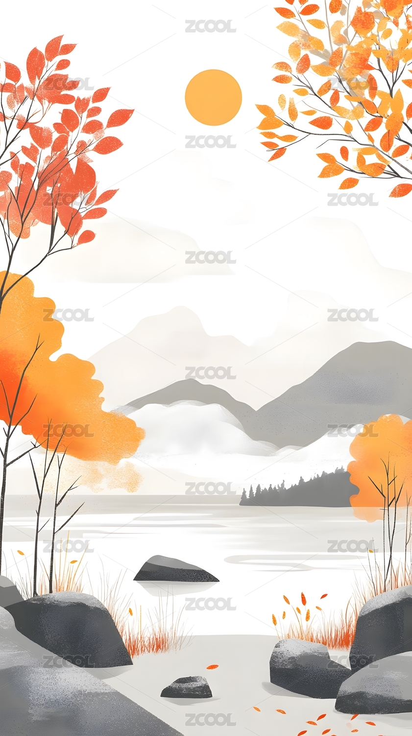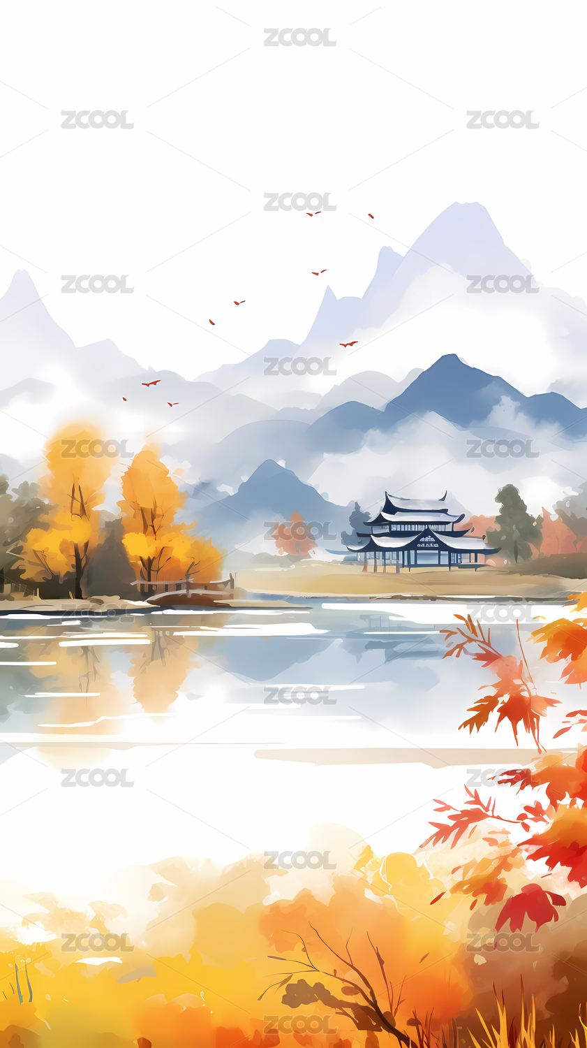 倒影,水面,树木,平静,意境,自然,山峦,水墨画,淡雅,风景