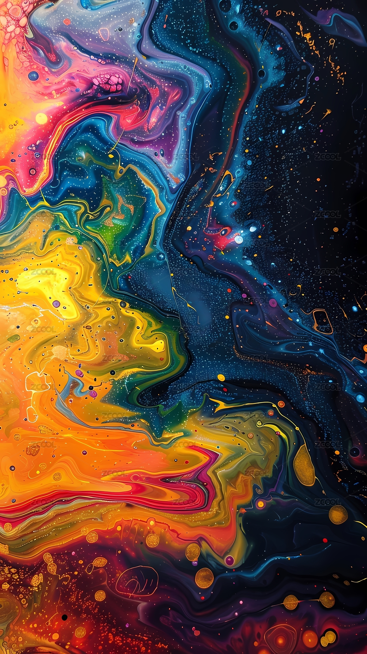 数码霓虹涂鸦大理石漩涡曲线抽象海报背景