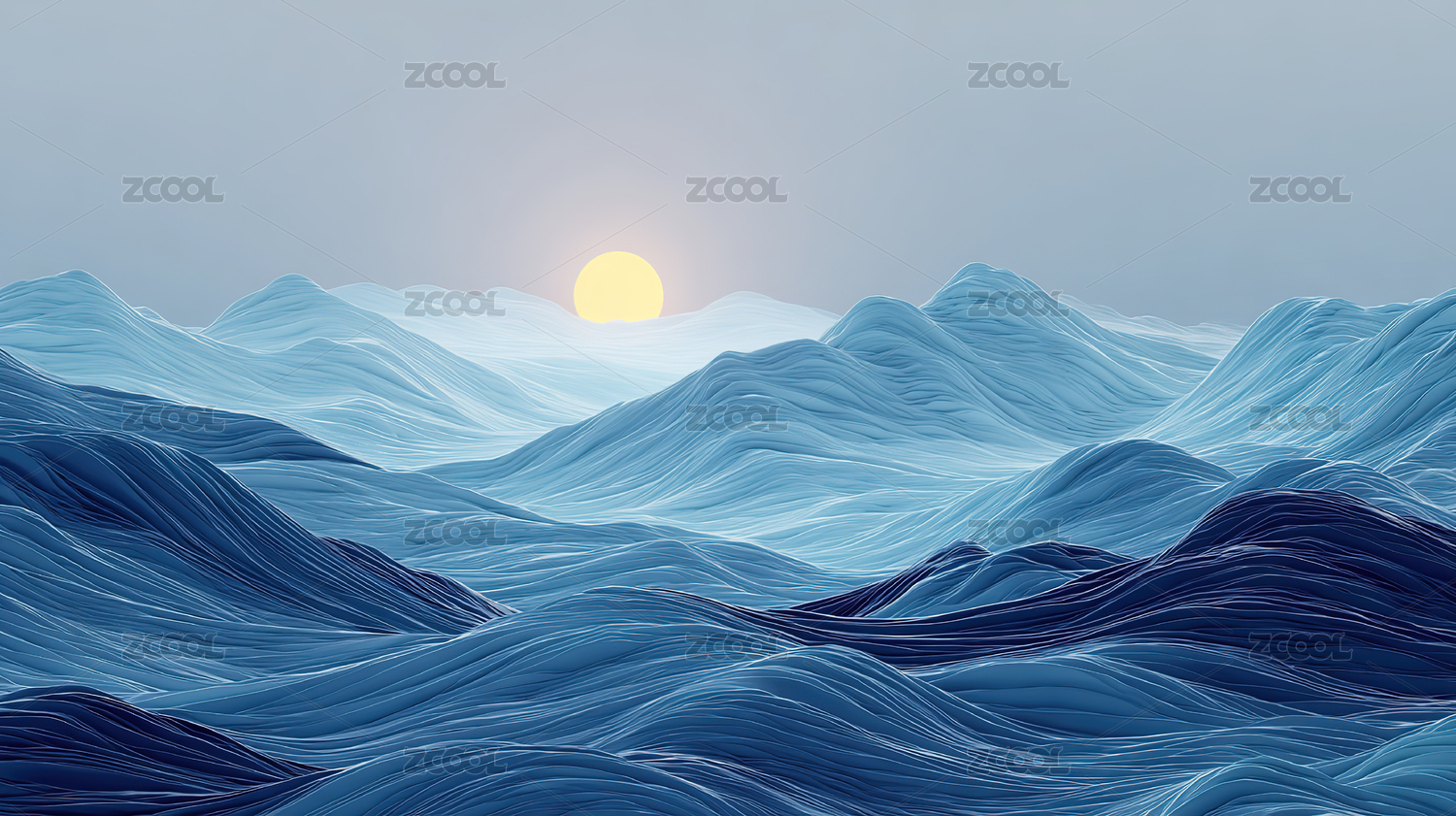 蓝色山峦日出景色