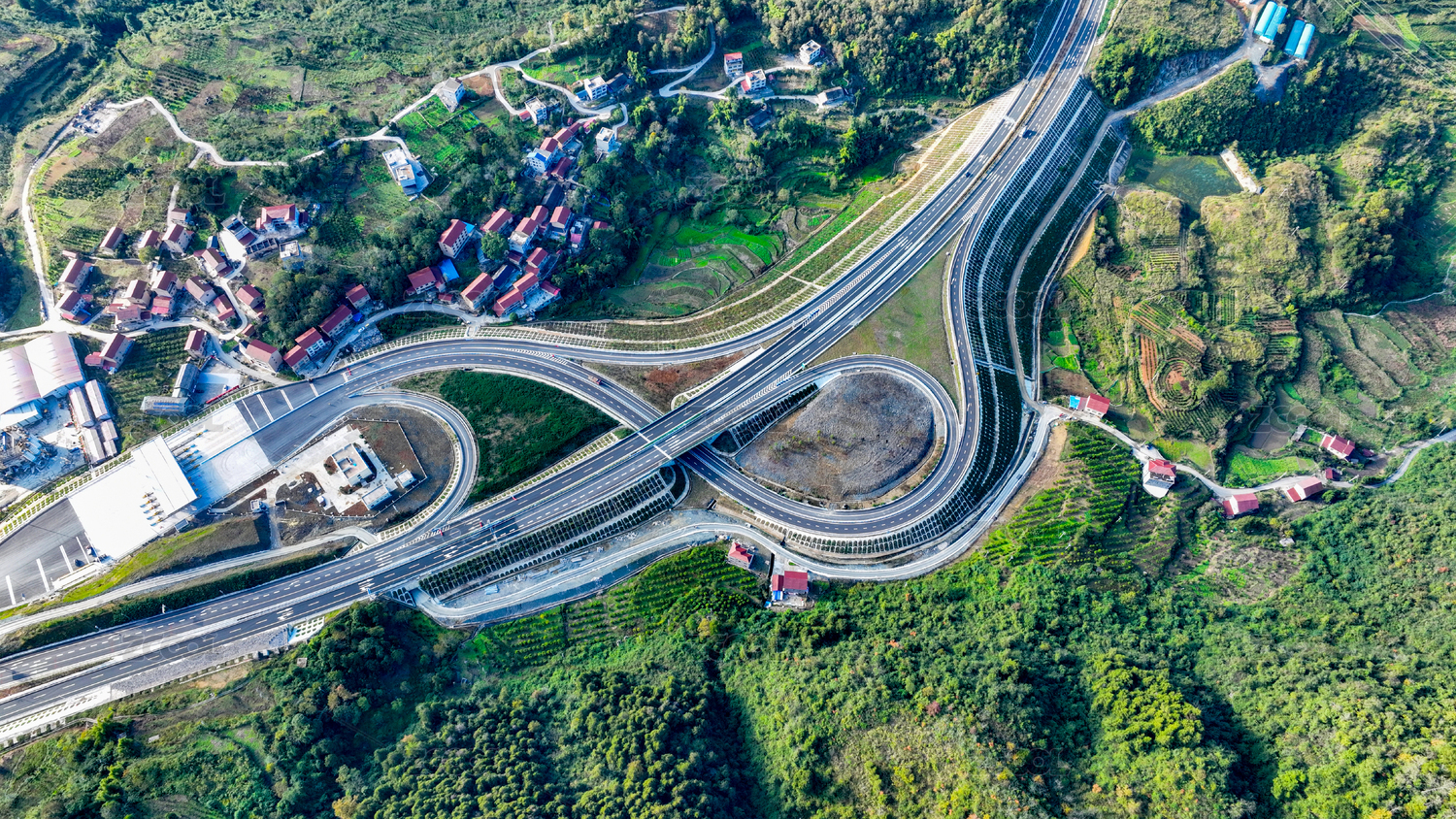 重庆酉阳高速穿山跨江沐浴冬日霞光