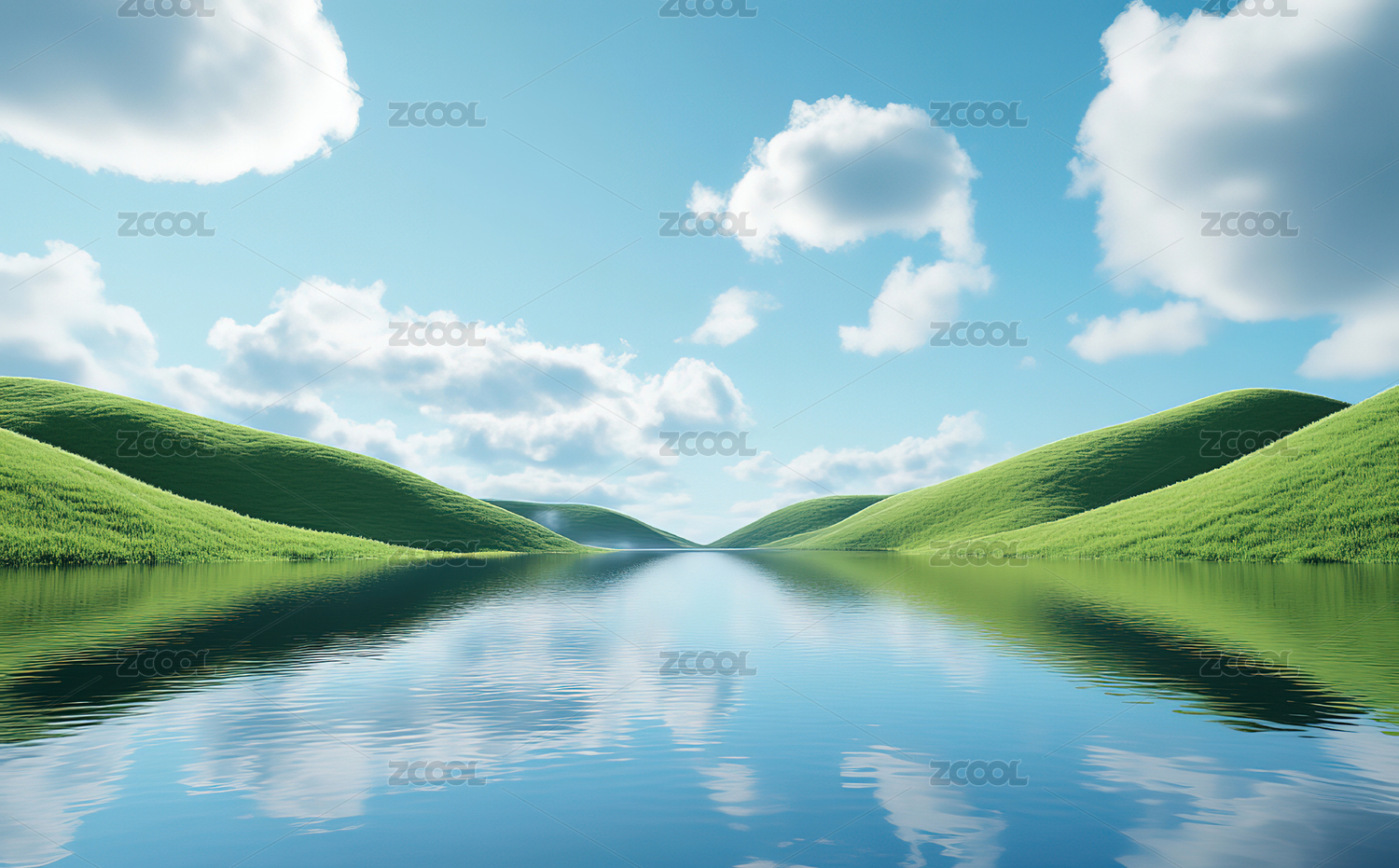 山丘湖面空灵意境