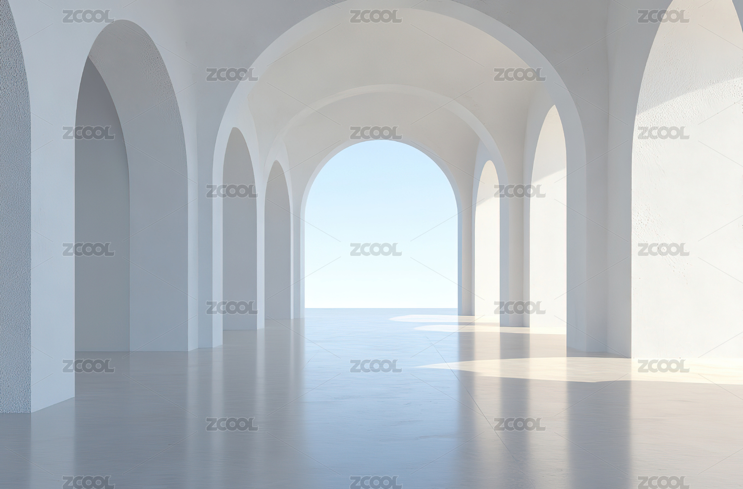 白色拱廊长廊通向远方