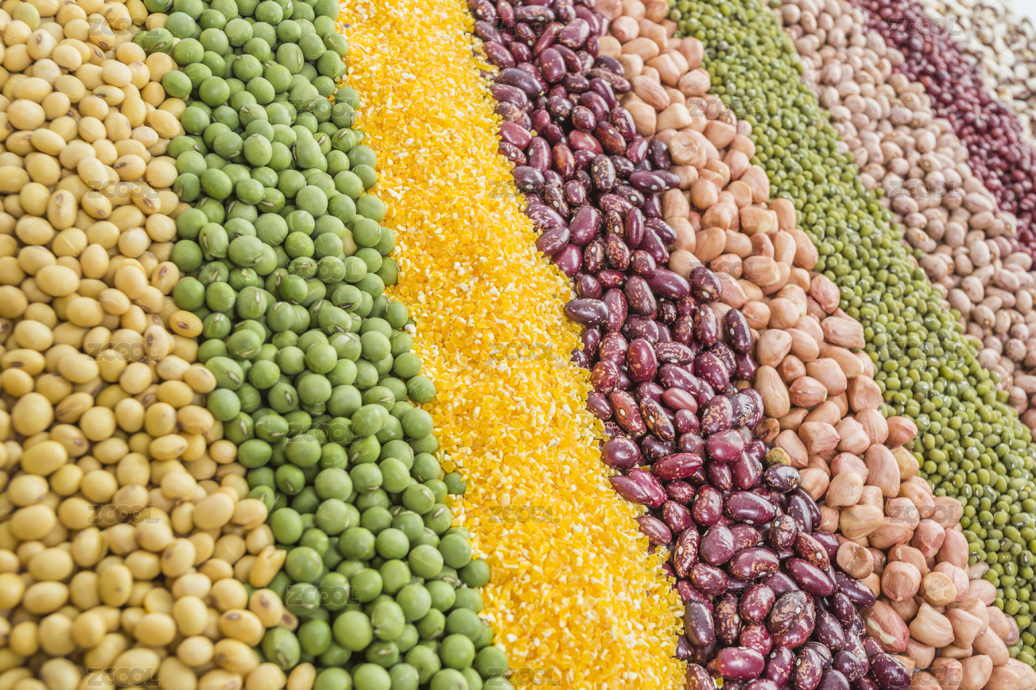 丰收的五谷杂粮特写/满屏的谷类豆类粮食/五谷丰登
