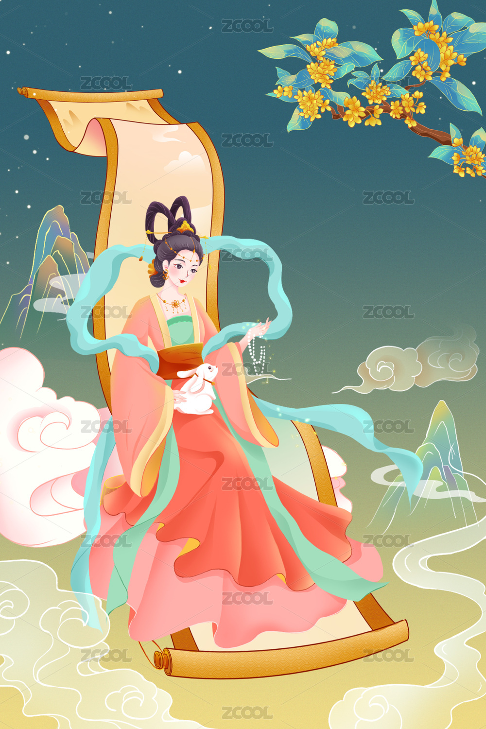 中秋节嫦娥主题壁纸插画
