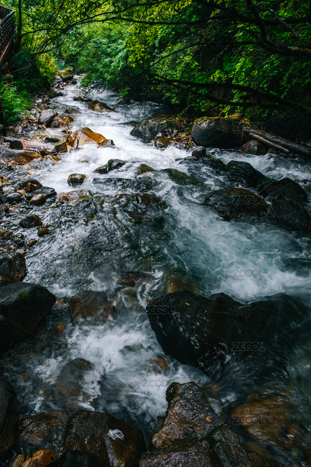 中国黑龙江五常凤凰山绿色树林瀑布摄影