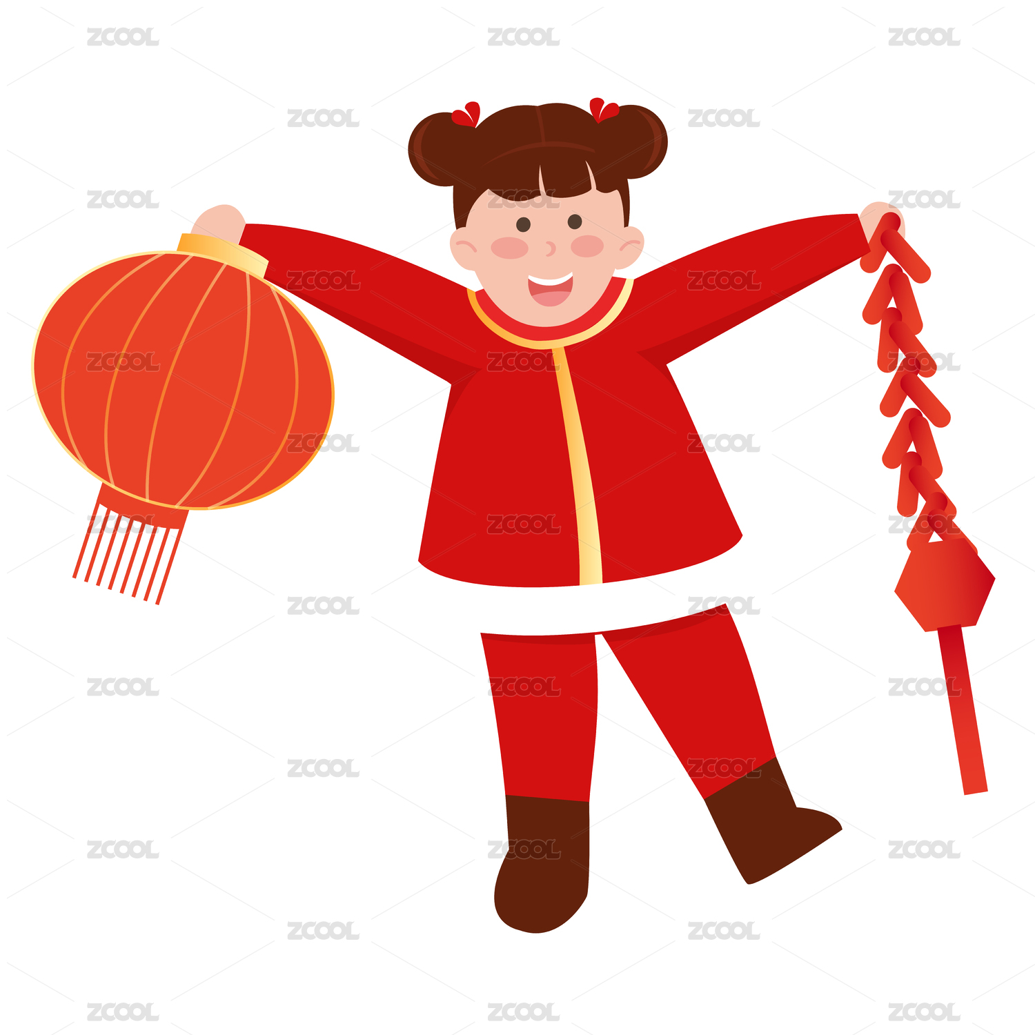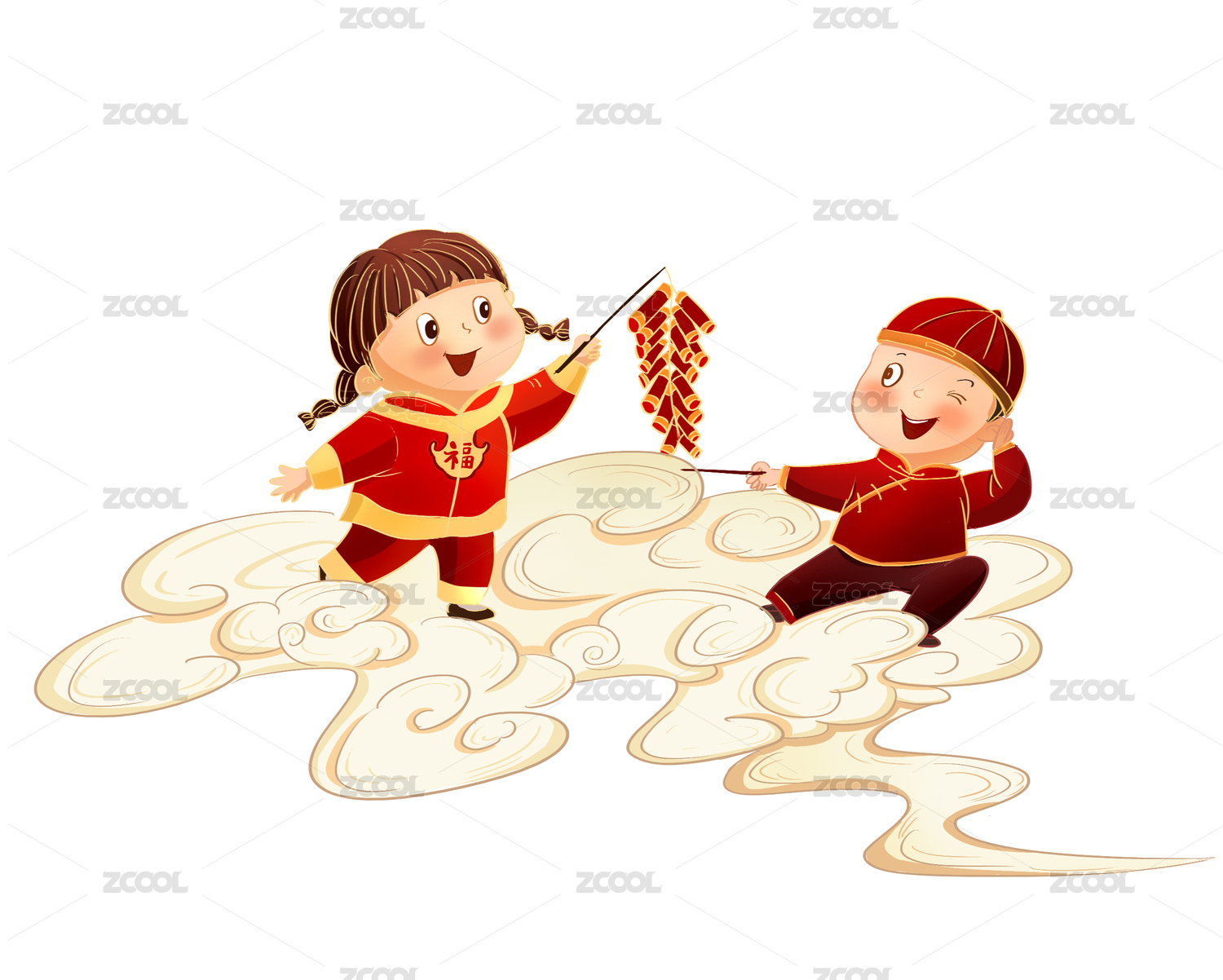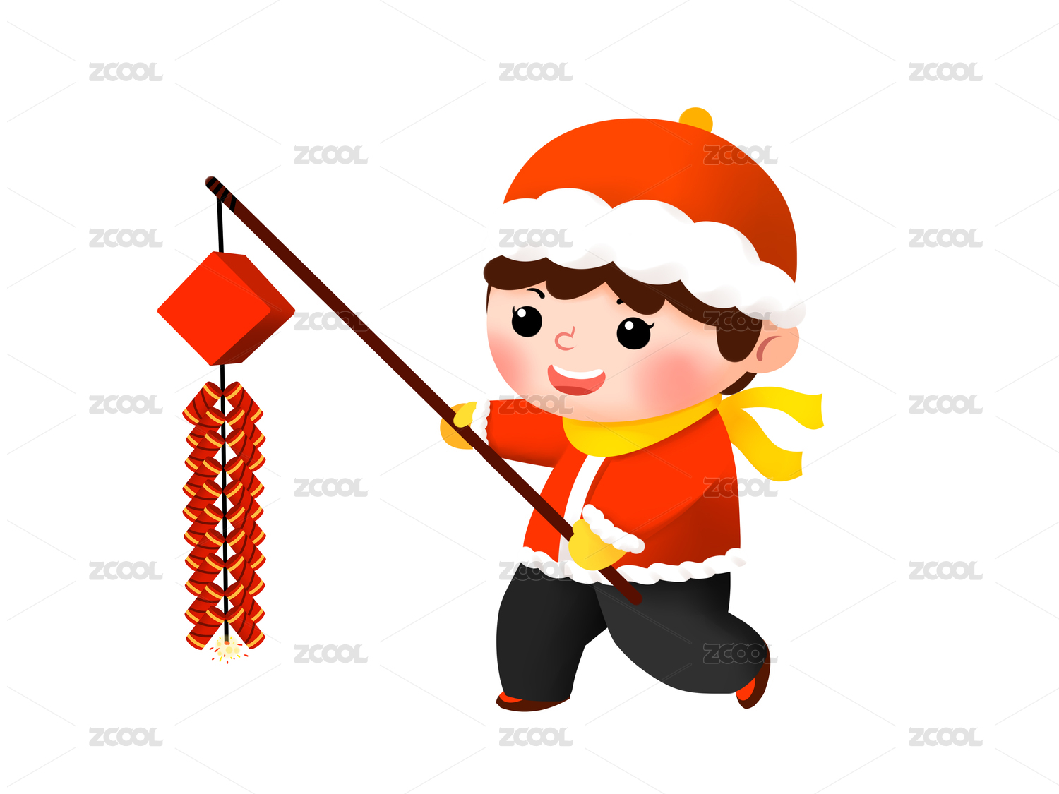 儿童放烟花手提着鞭炮的小孩过年玩卡通