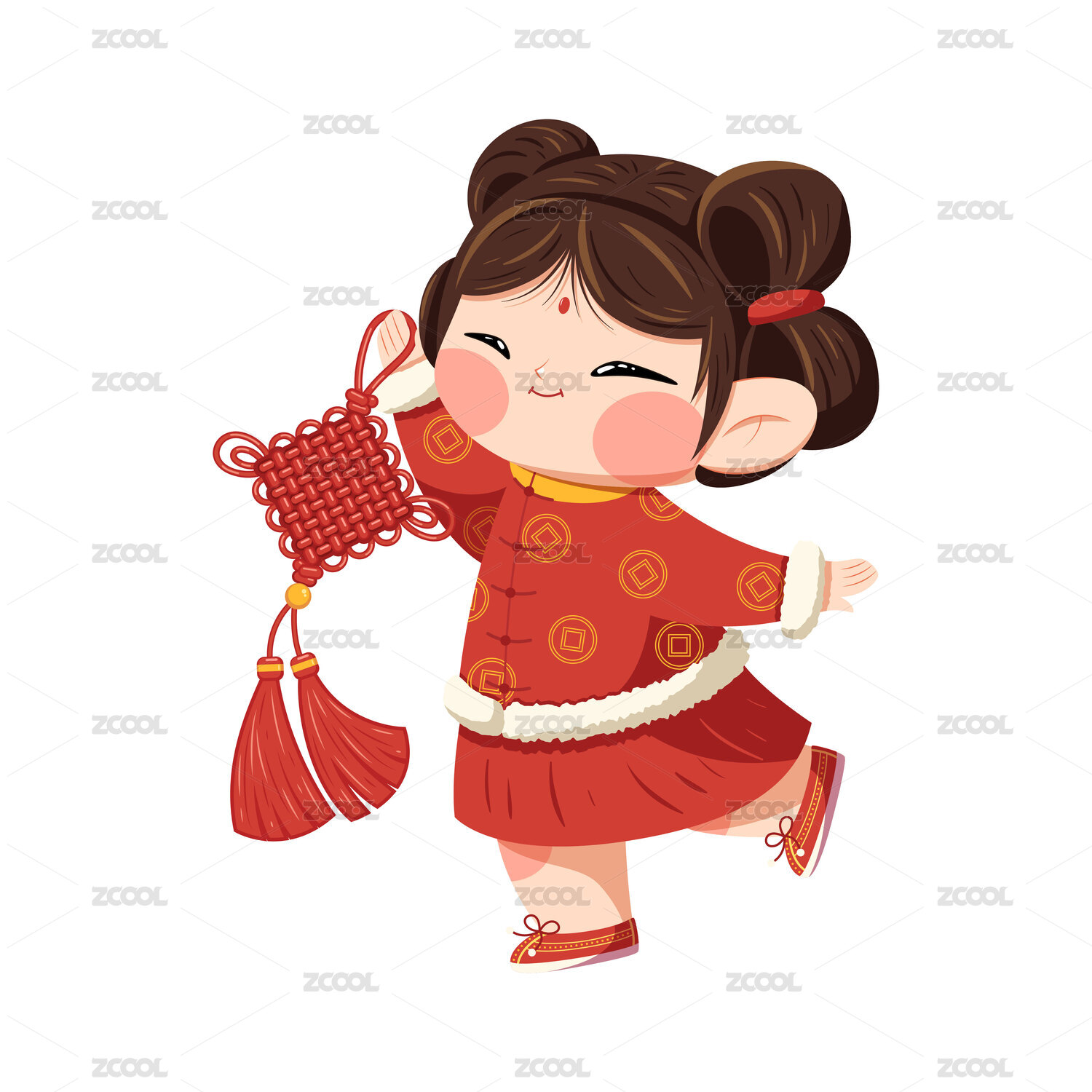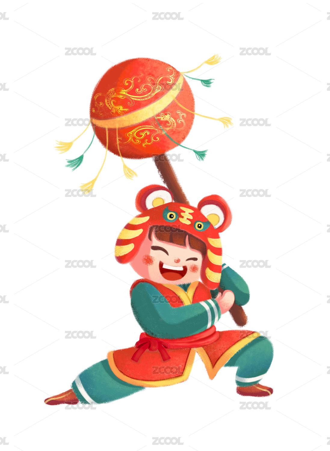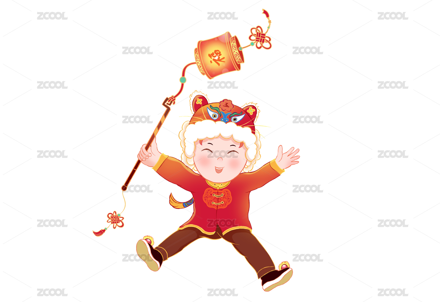 红色可爱喜庆创意虎头帽福娃鞭炮元素