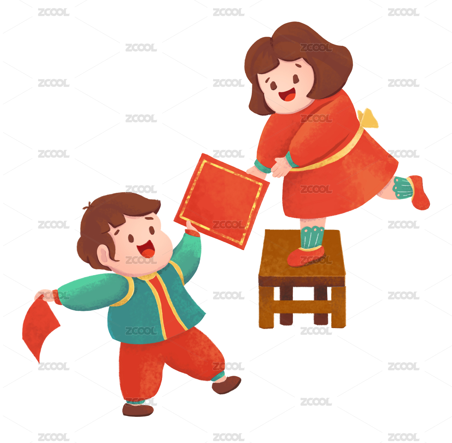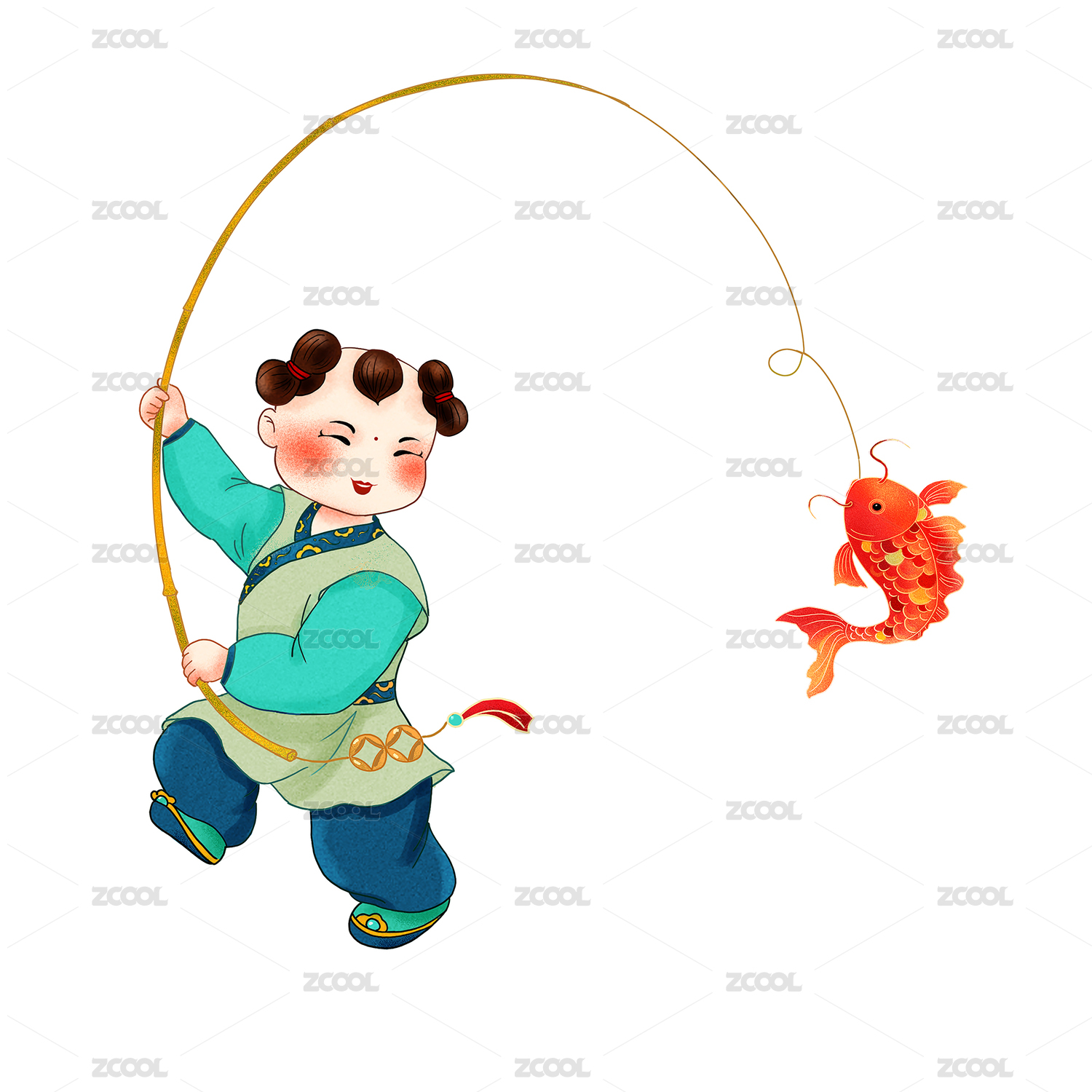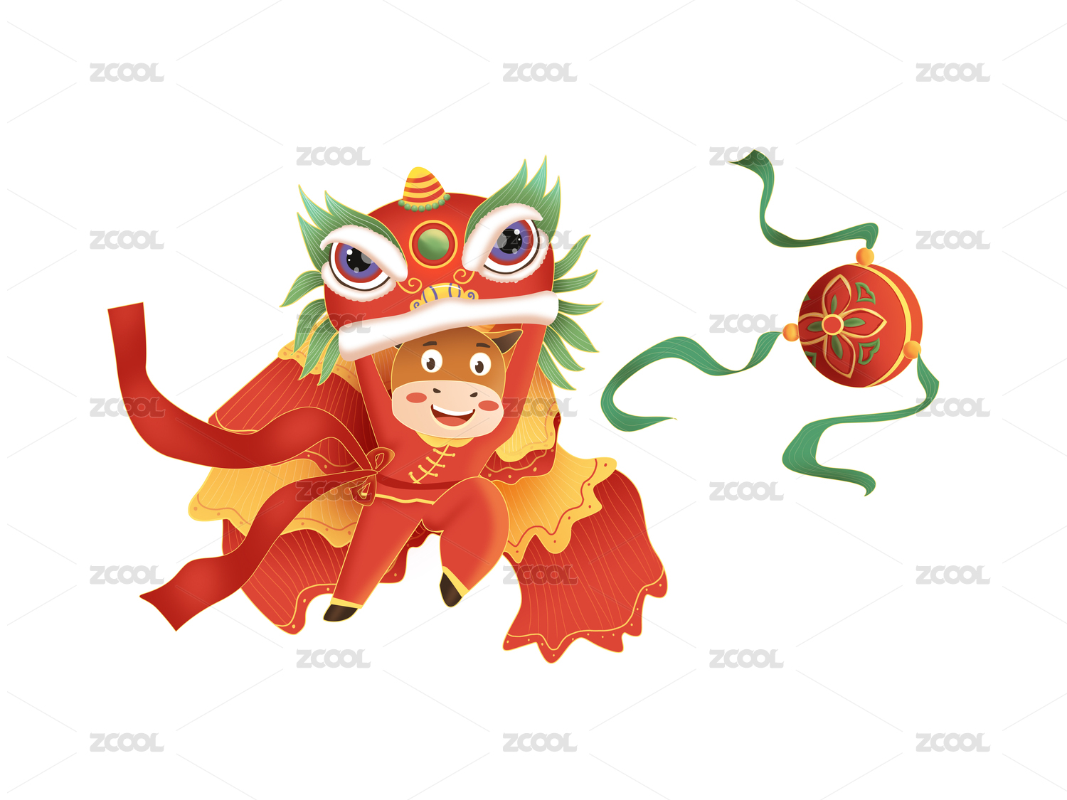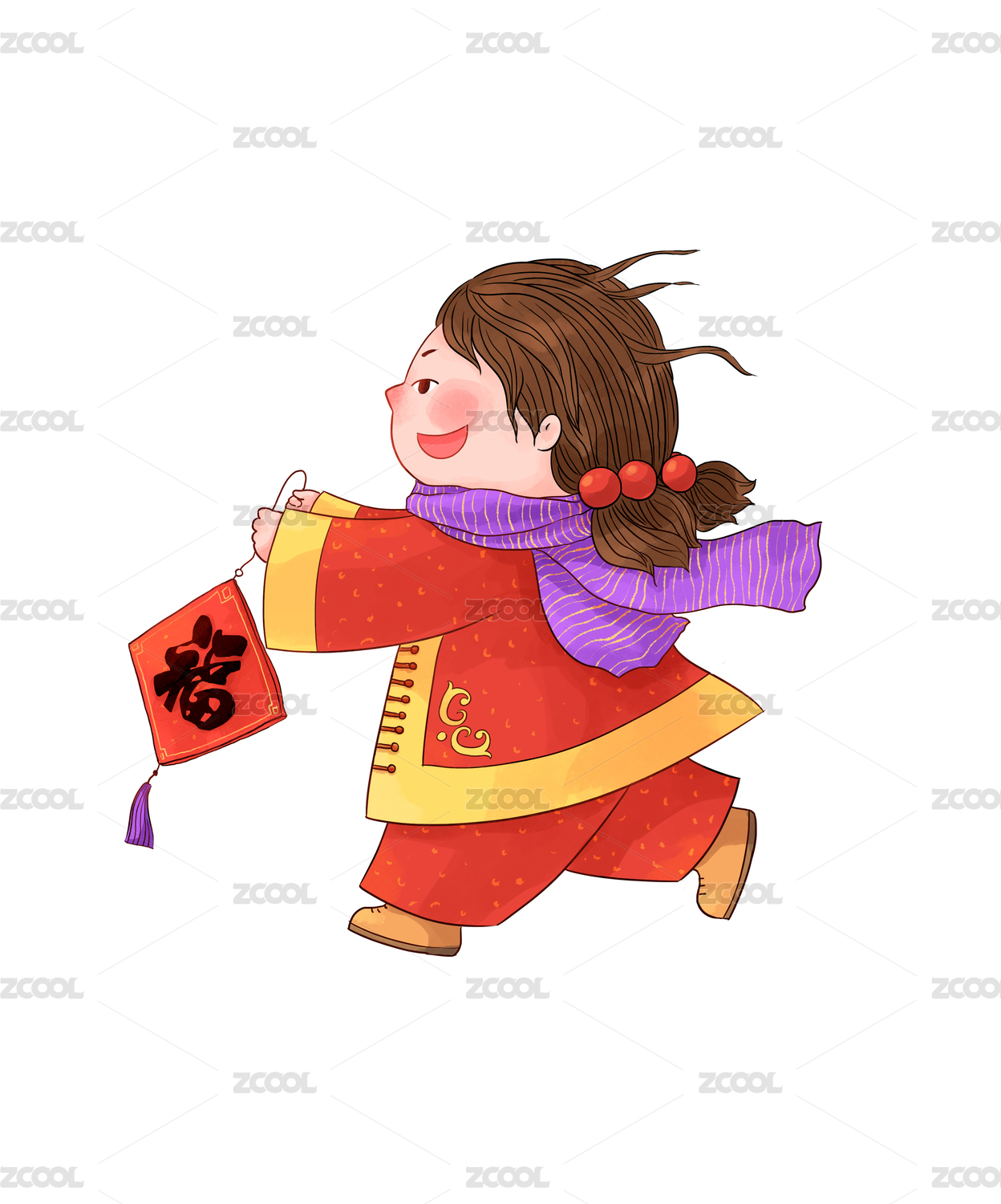 红色可爱喜庆创意虎头帽福娃鞭炮元素
