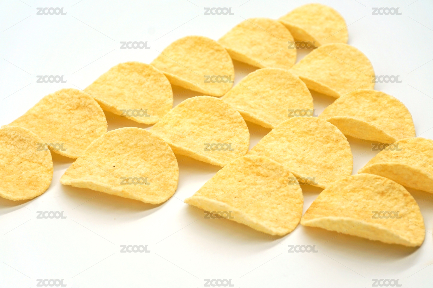 香脆薯片特写,白色背景素材