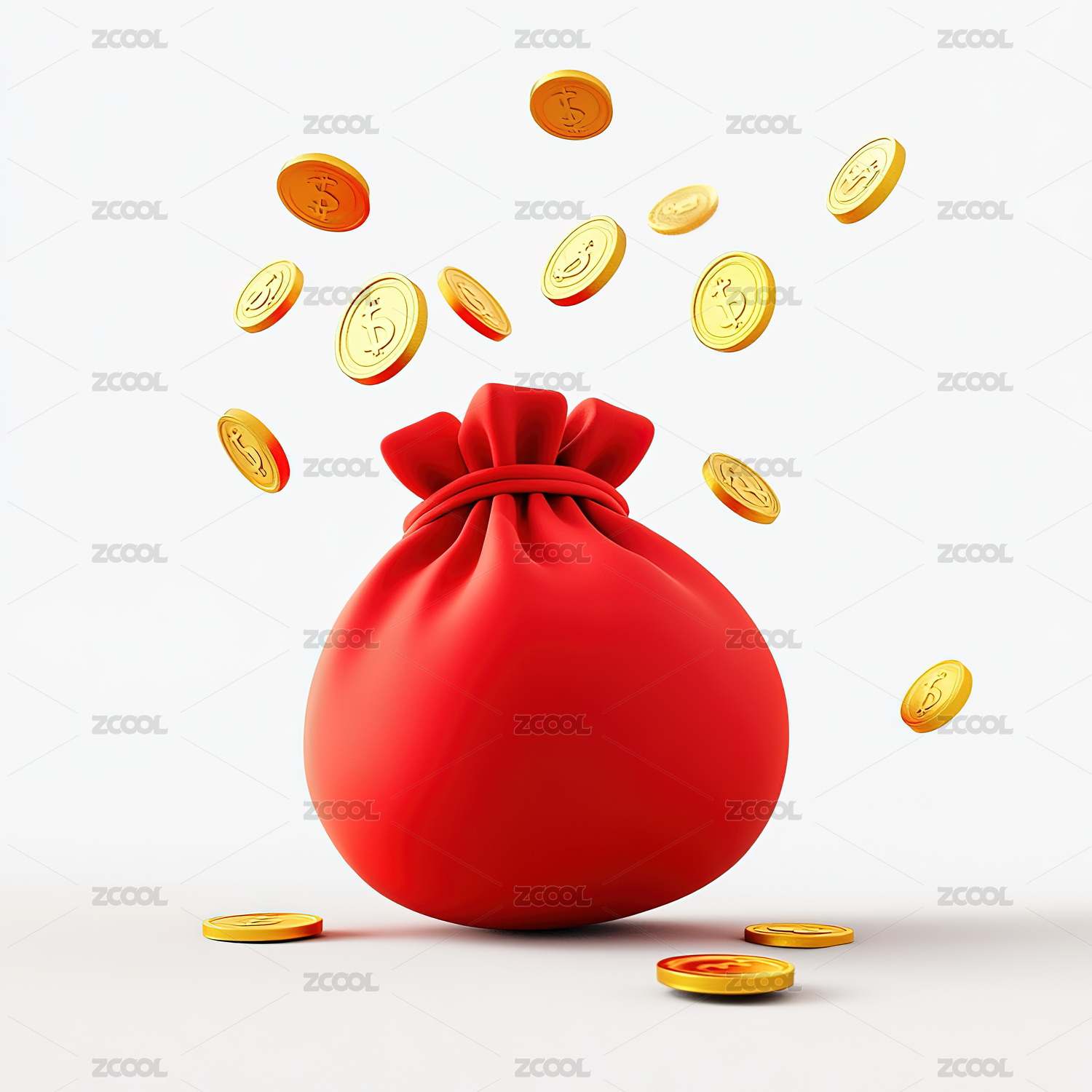 3D春节红色福袋铜钱金币渲染图形