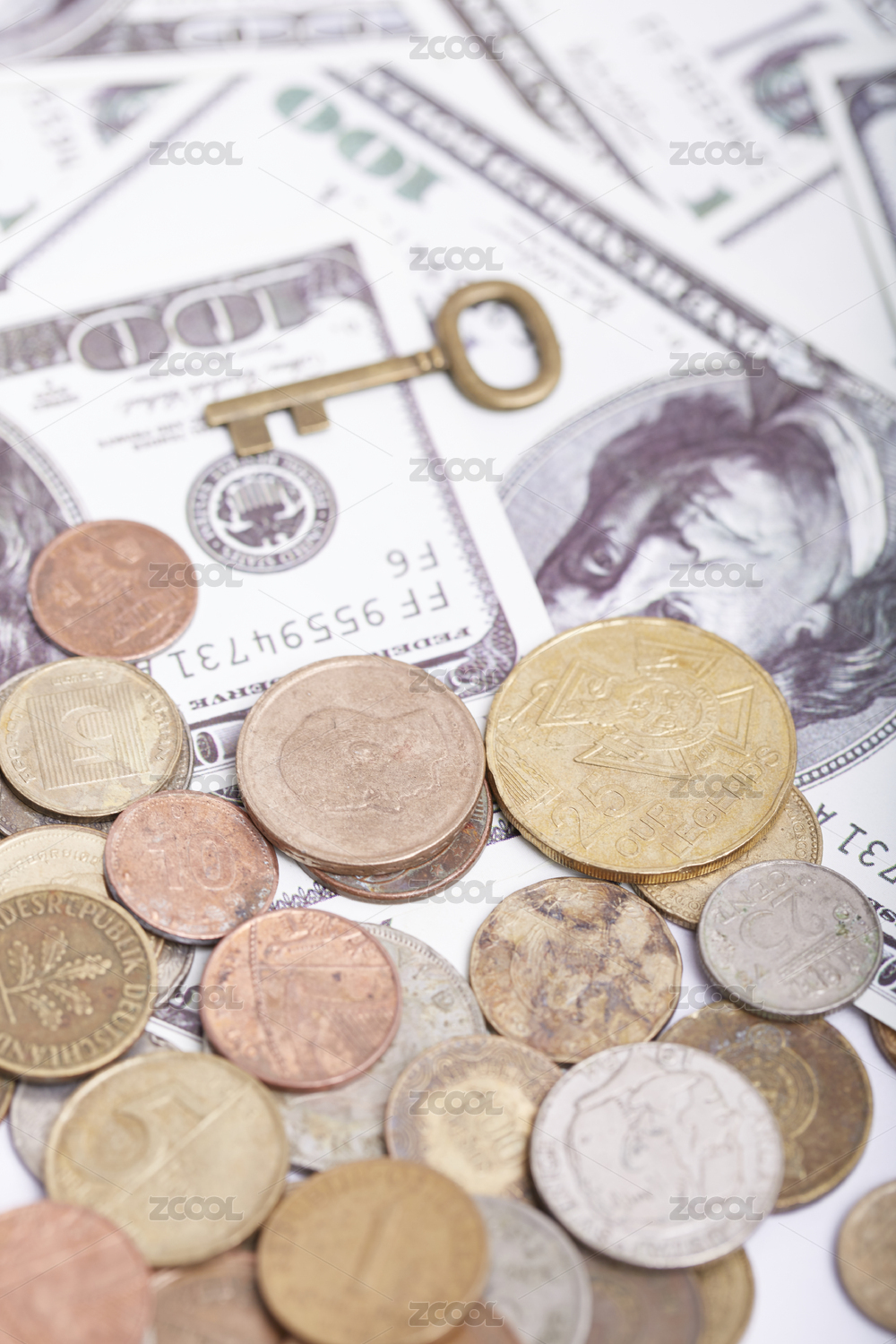 硬币 钥匙 金牛 手机 金融商务 桌面