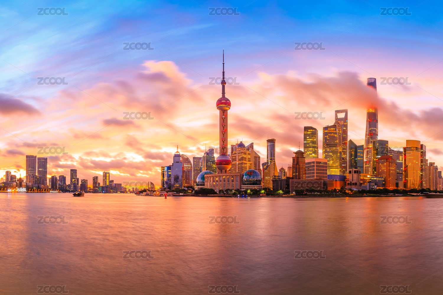 上海日落时城市建筑风光