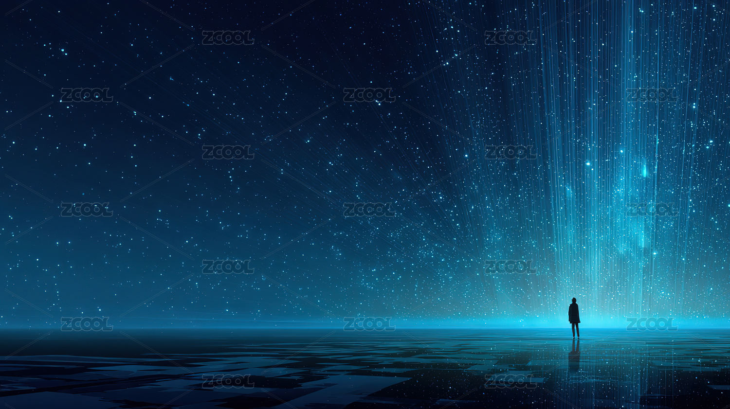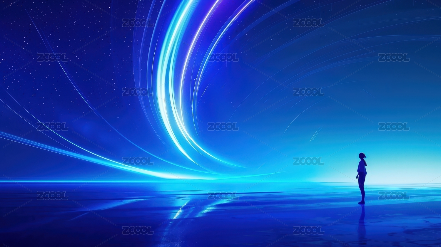 蓝色光束下的孤独行者