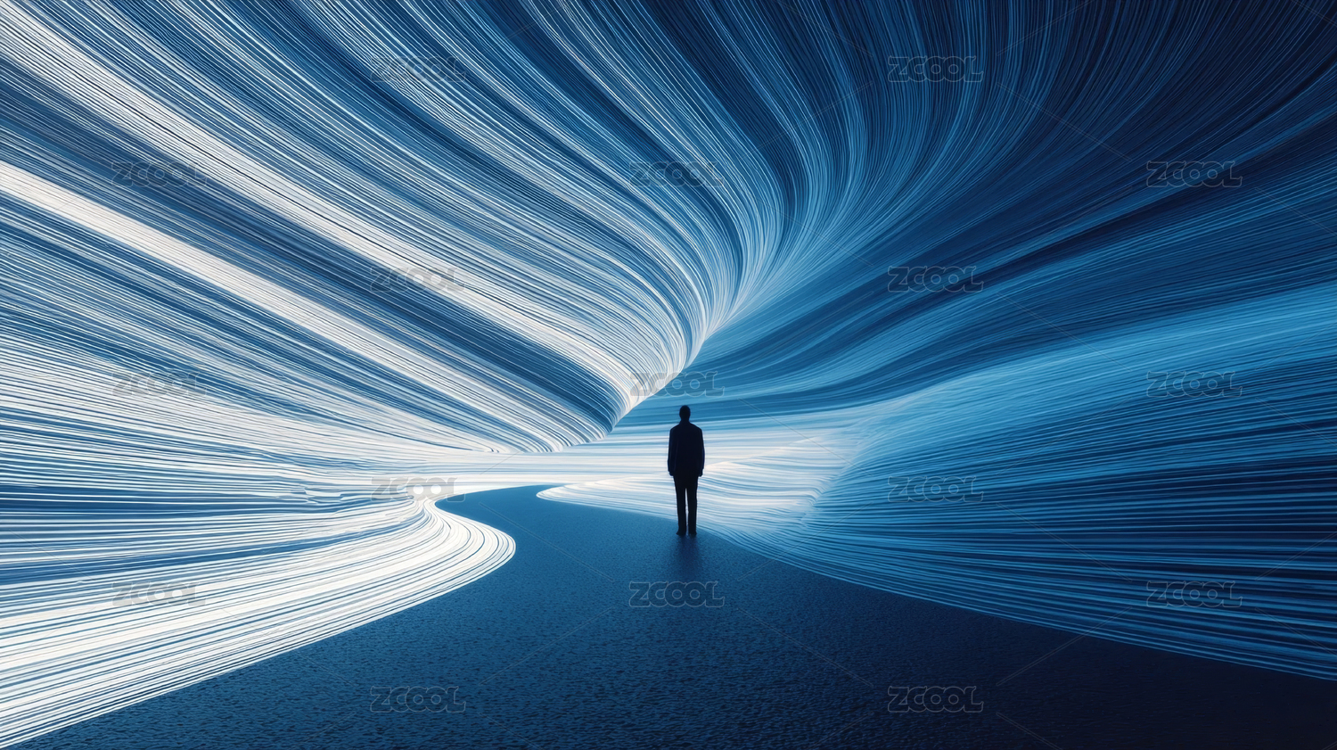 站在光速隧道中的男人剪影