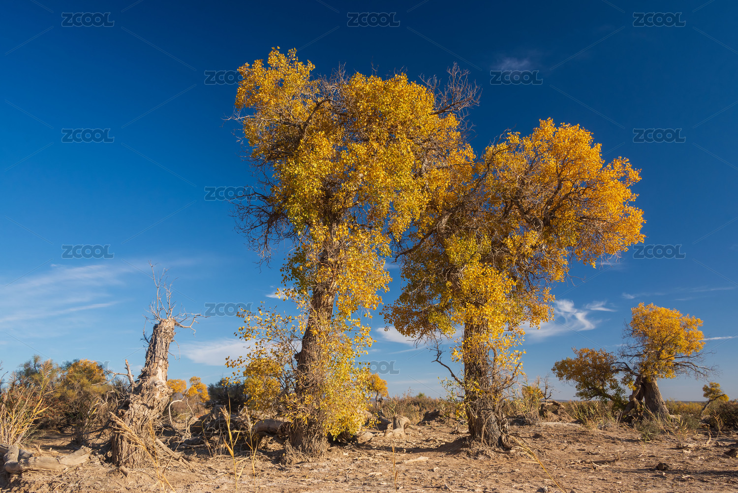 秋季蓝天下内蒙额济纳齐胡杨林风光