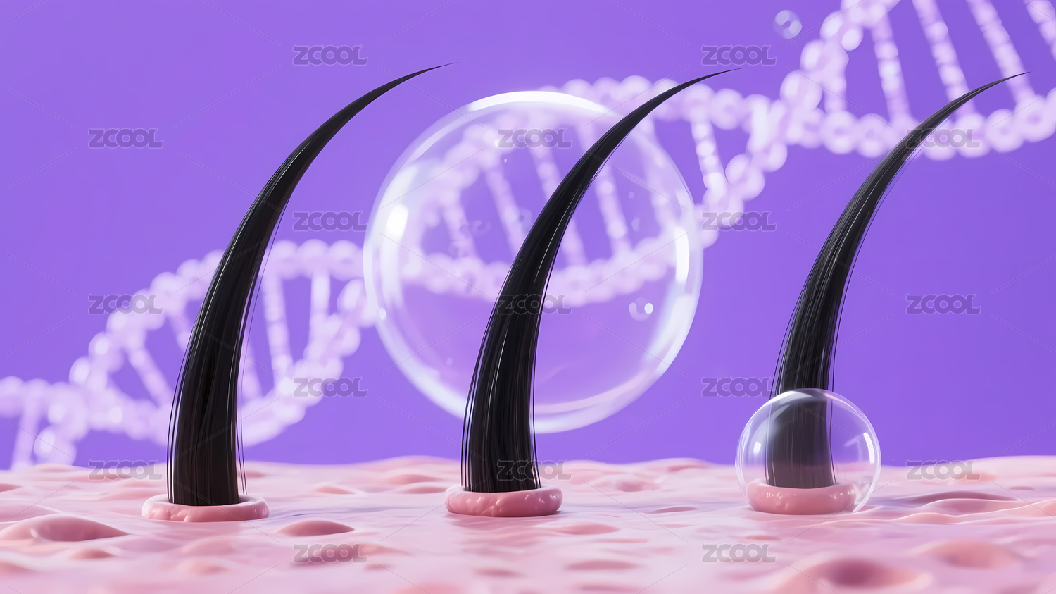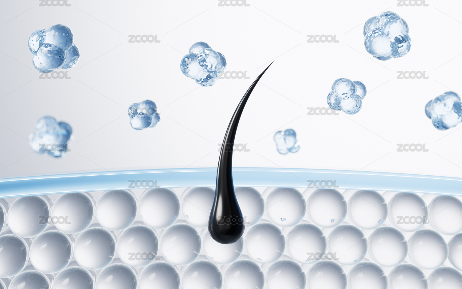 头发与头皮组织头发滋养概念3D渲染