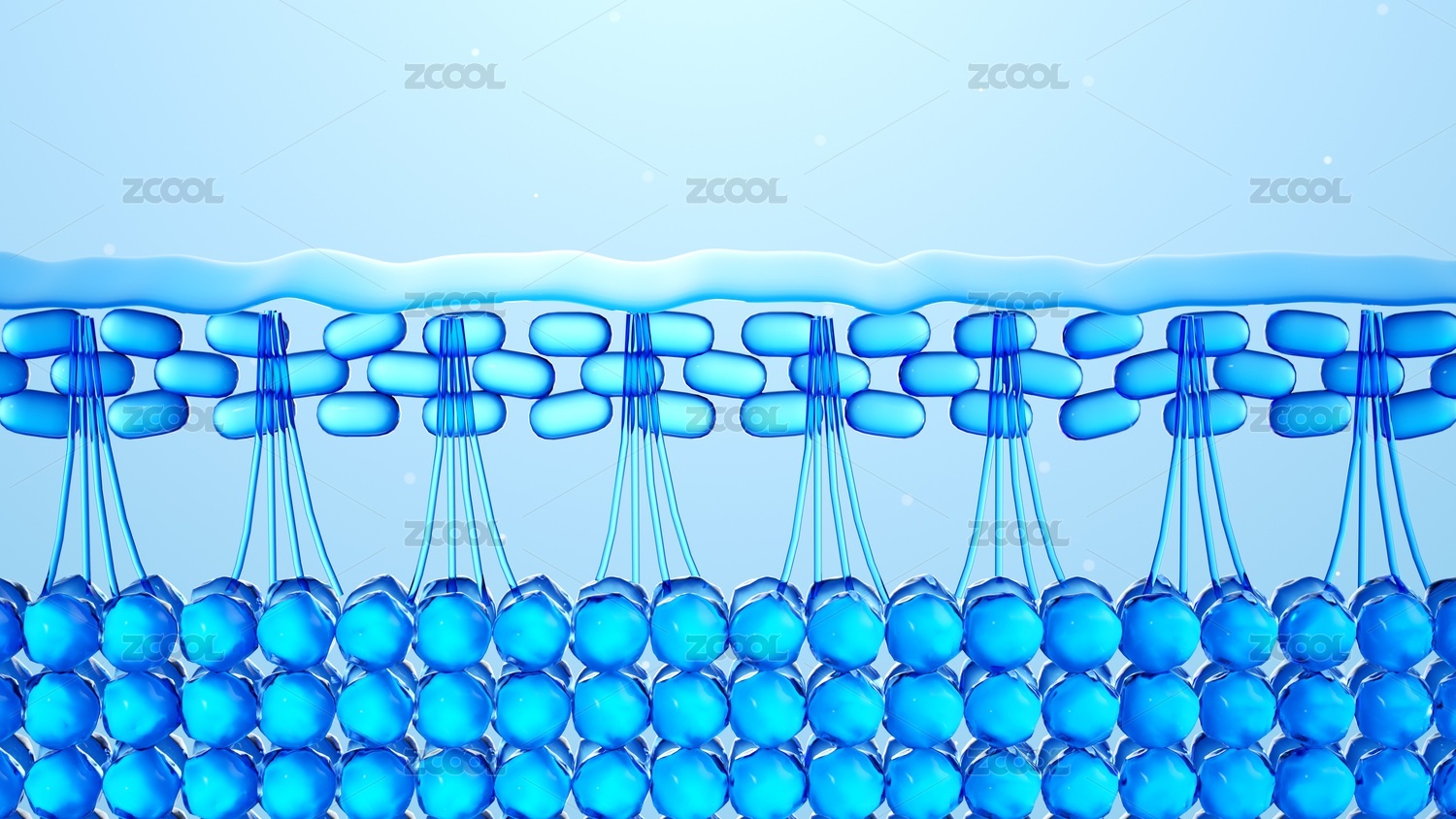分子结构与皮肤组织生物概念3D渲染