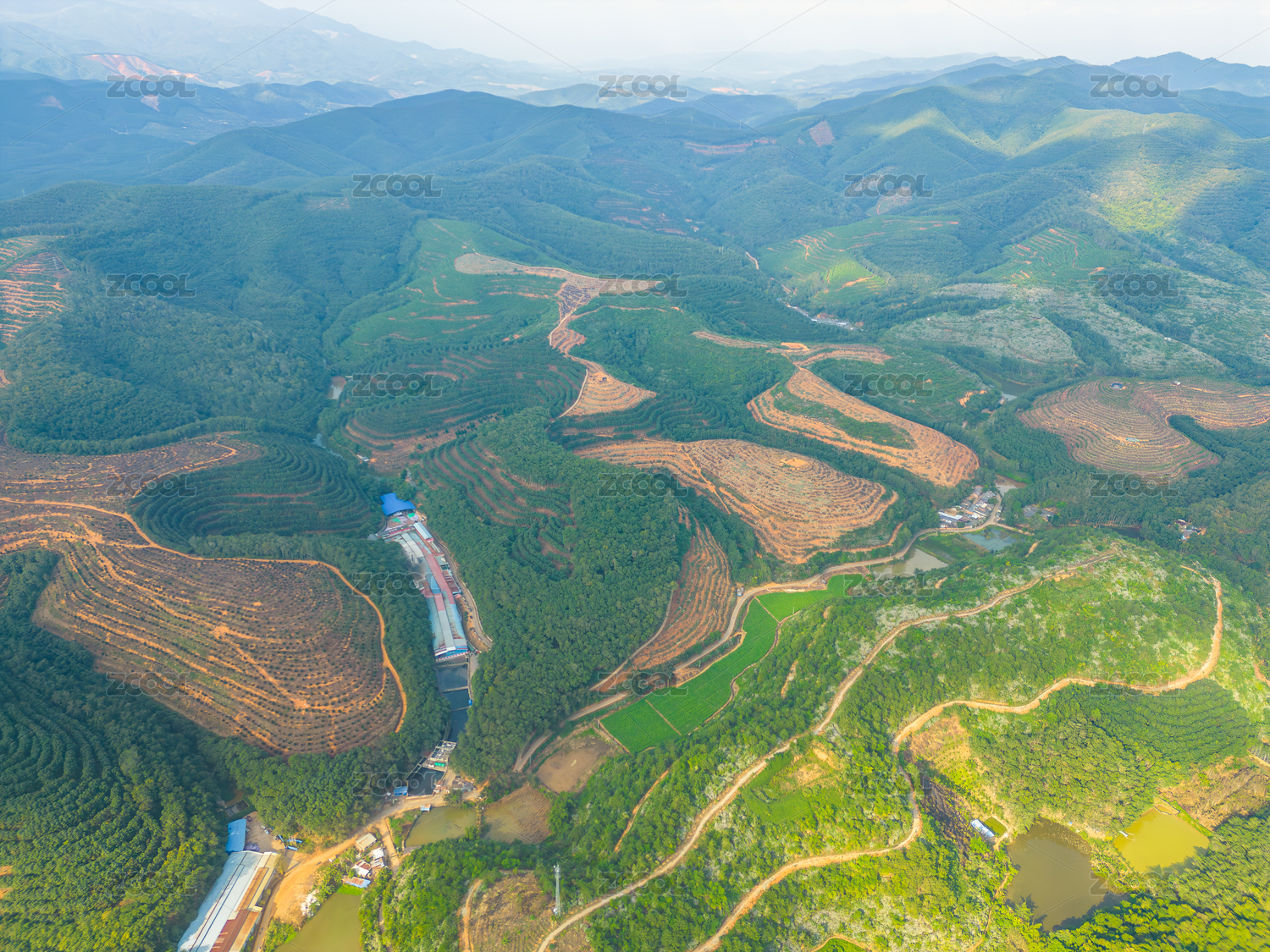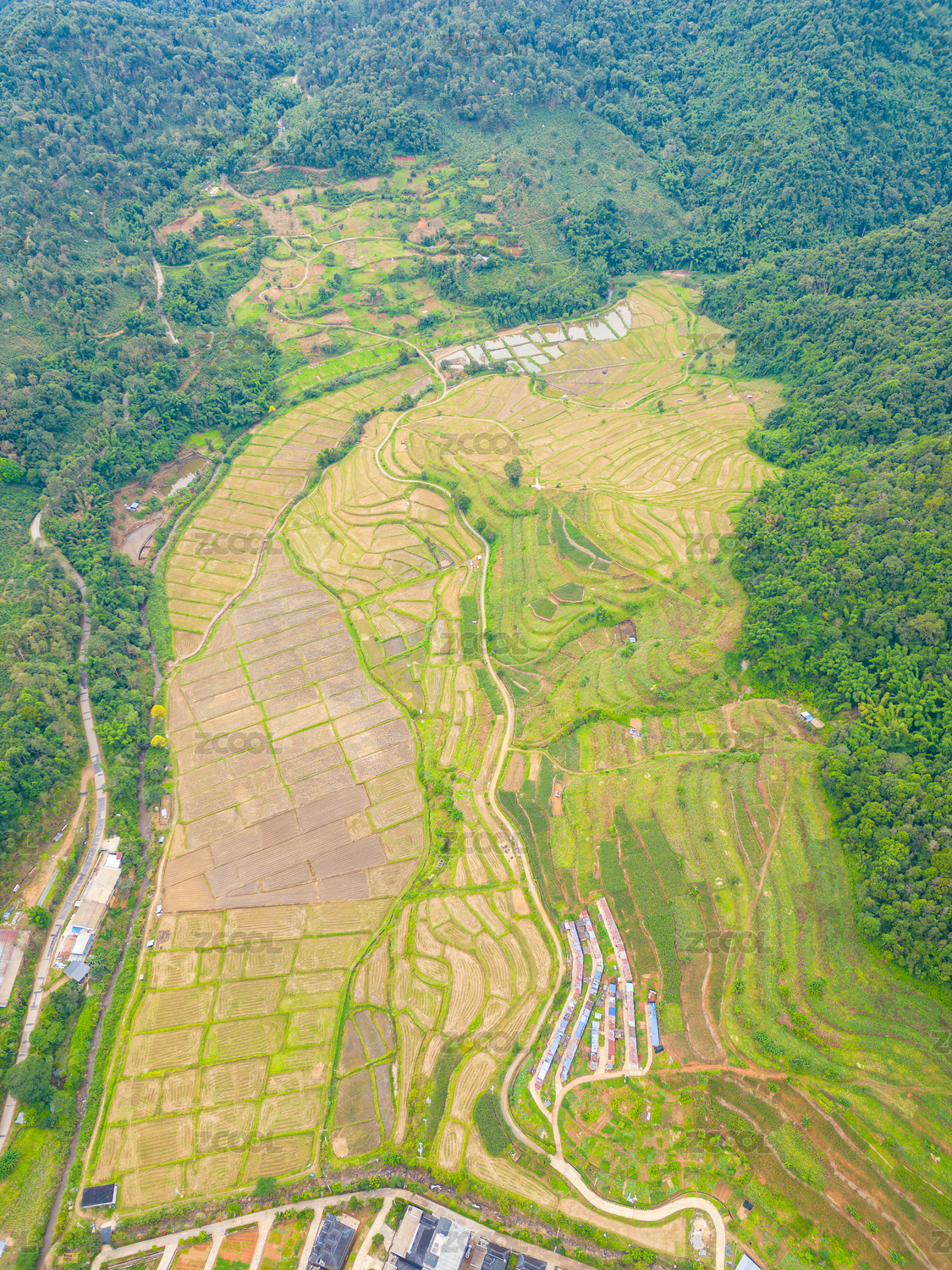 田园风光,航拍视角,航拍,乡村,风景,自然,天空,西双版纳,稻田,农田