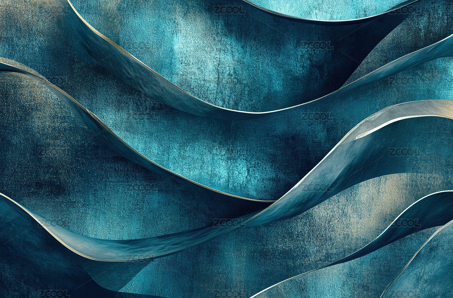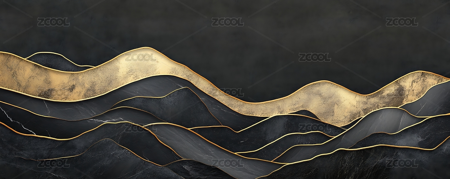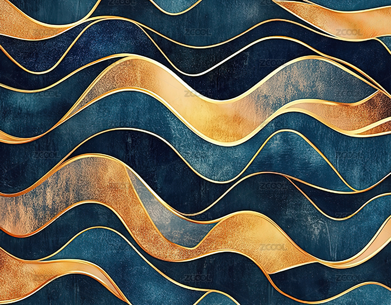 金色线条的蓝色波浪