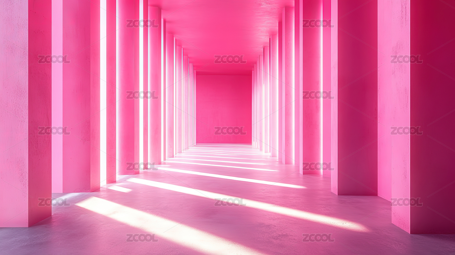 粉红色背景下的空走廊