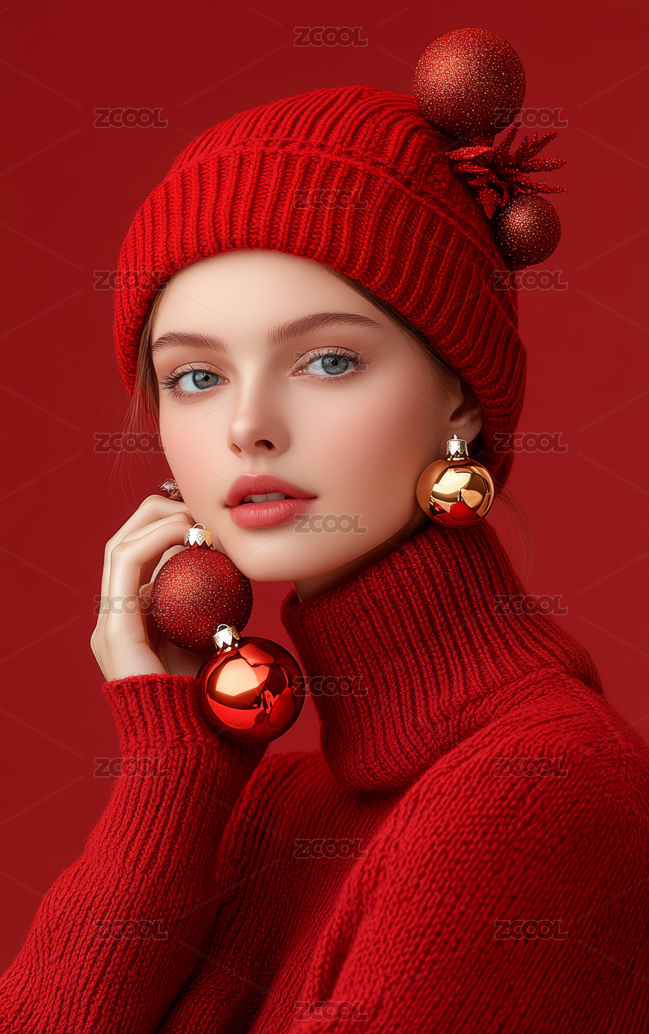 红色,圣诞节,圣诞主题,欧美风格,人像,特写,写真,背景,海报,壁纸