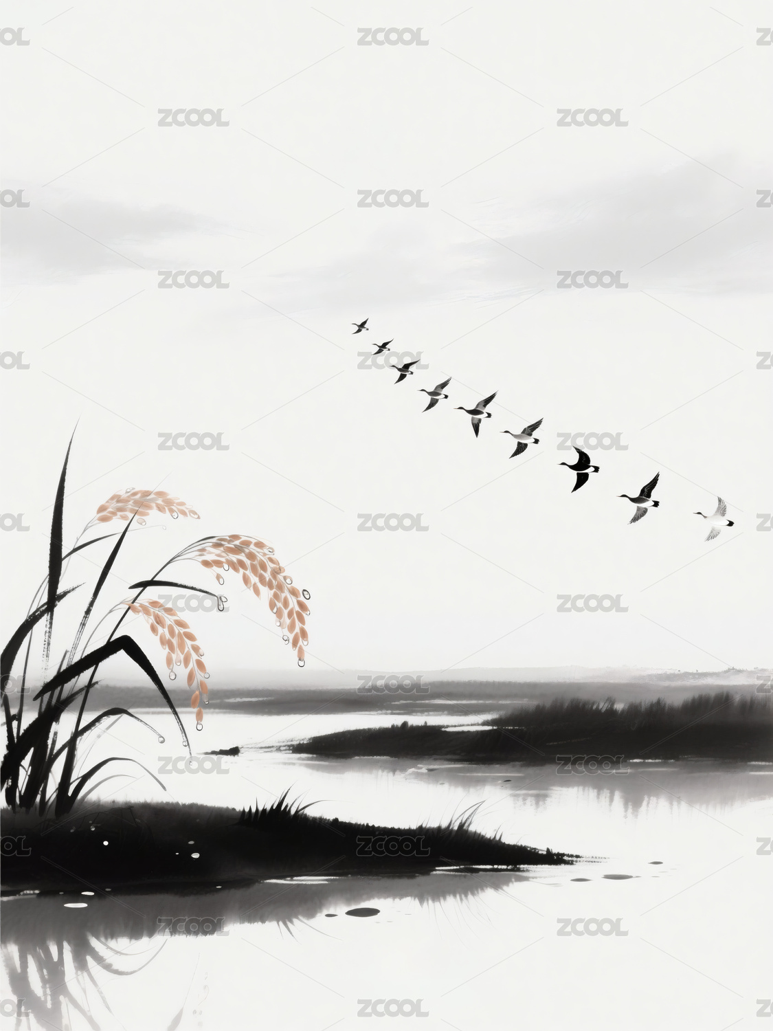 水墨写意风的植物