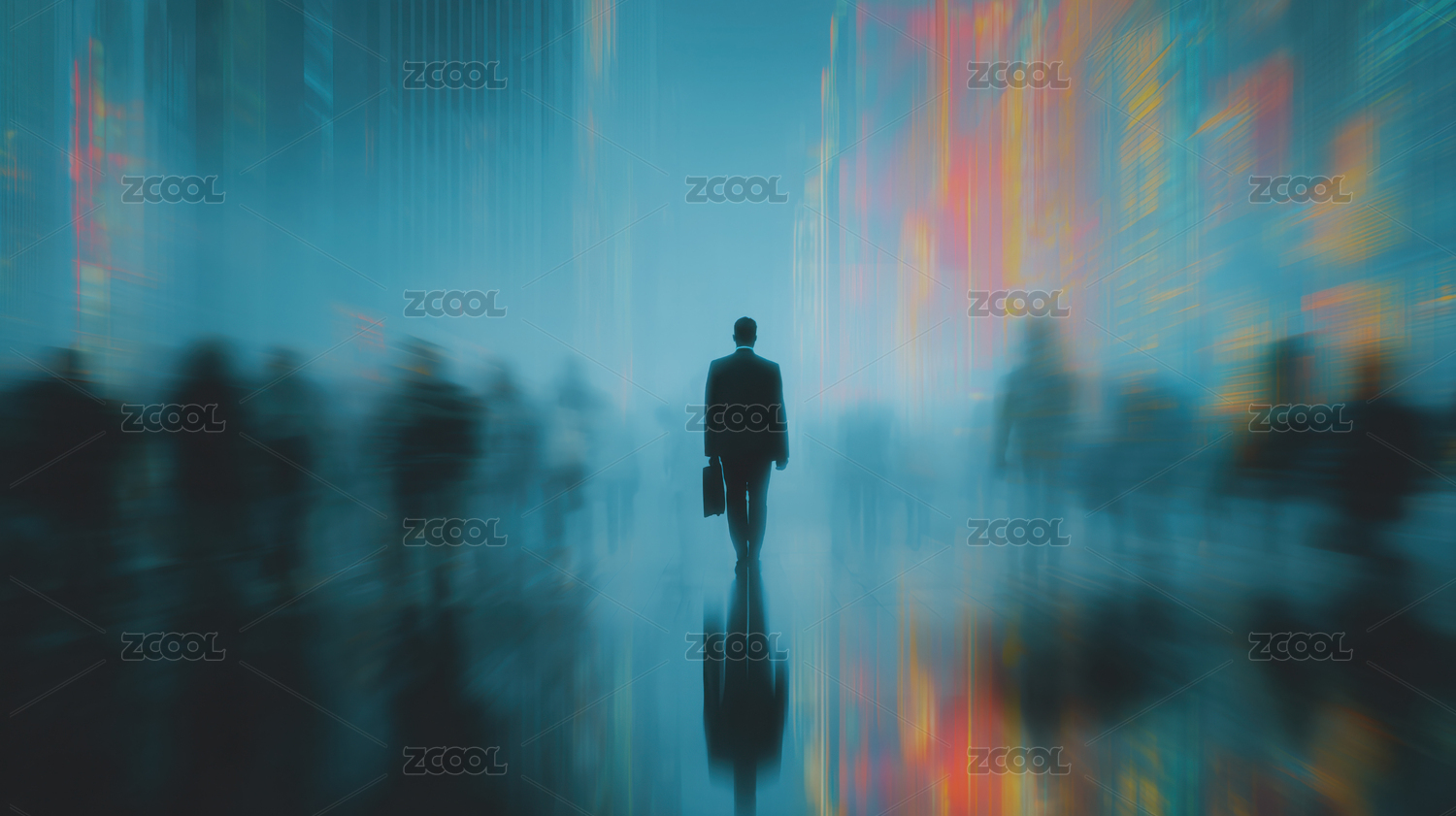 一个孤独的人站在悬崖边缘,俯瞰着远方的城