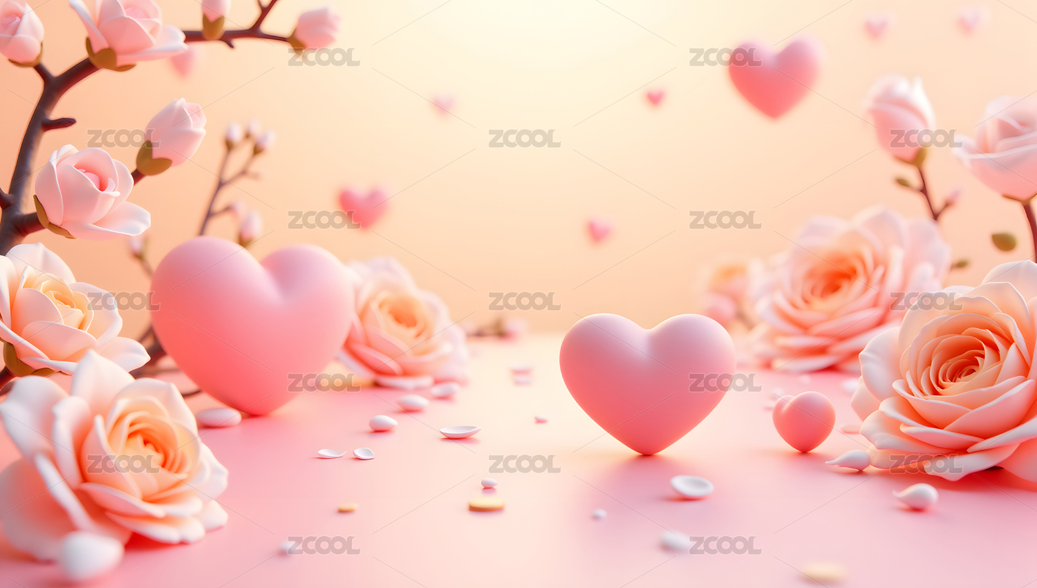 浪漫玫瑰与心形背景