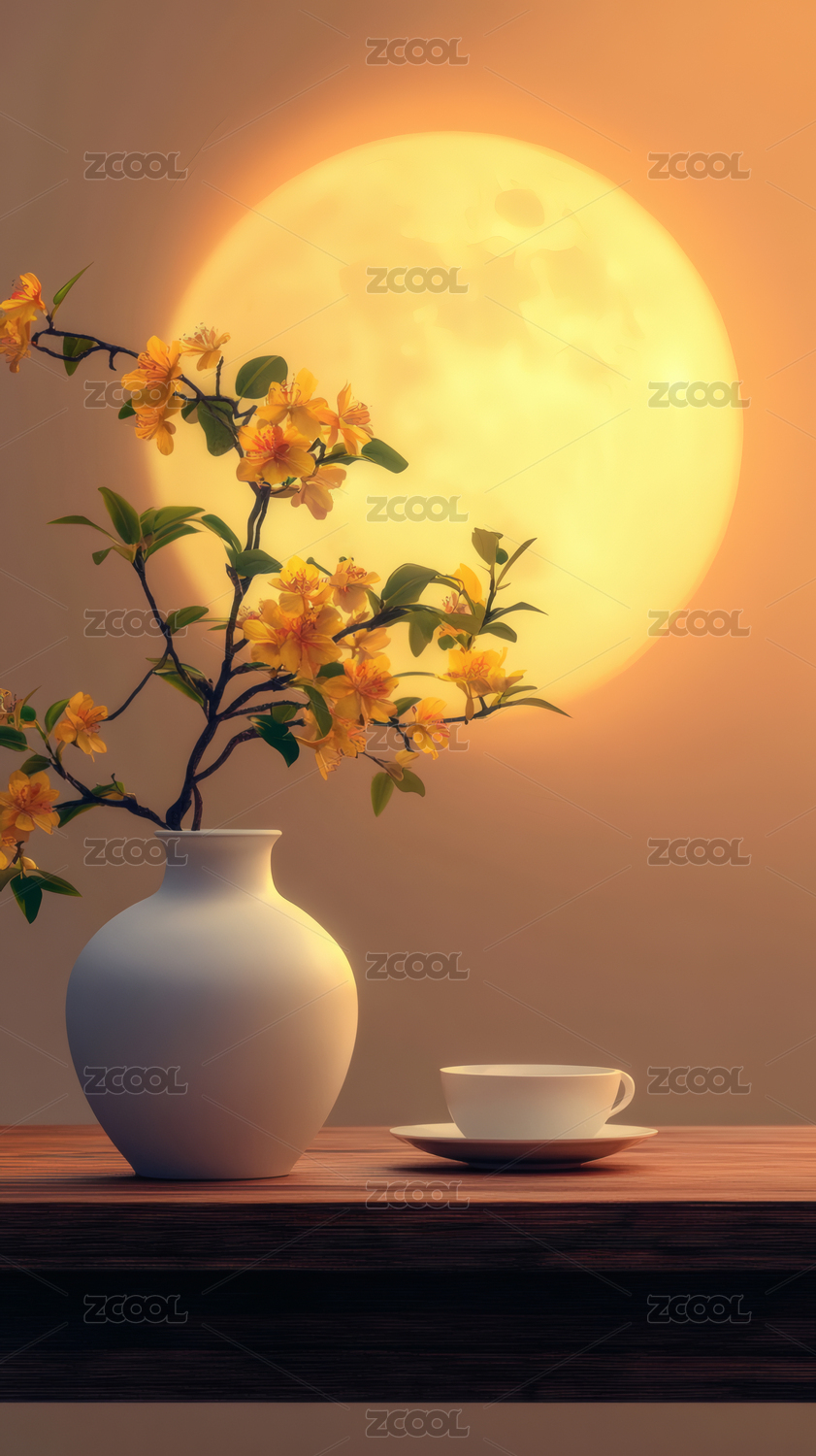 秋菊,石榴,静物,花卉,中国风,写意,水墨,暗色调,优雅,意境