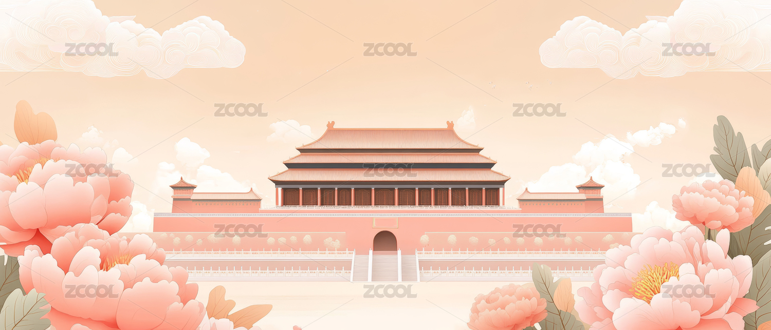 中国北京故宫太和殿长城天坛古建筑矢量插画