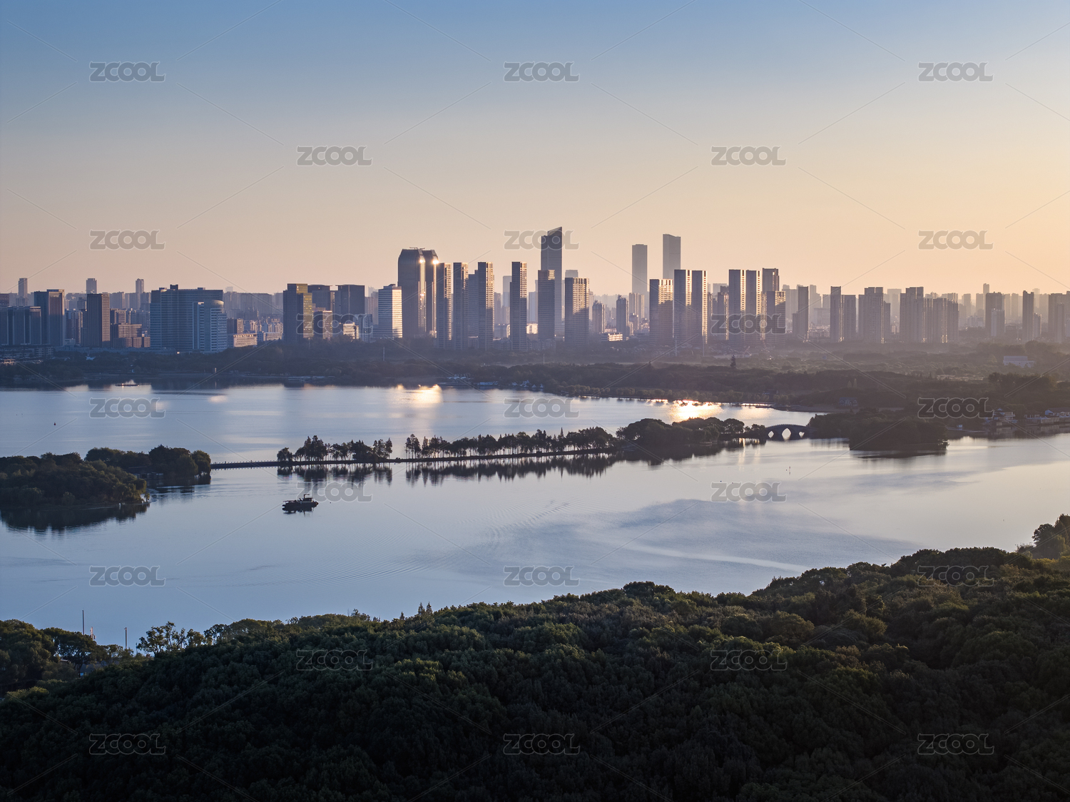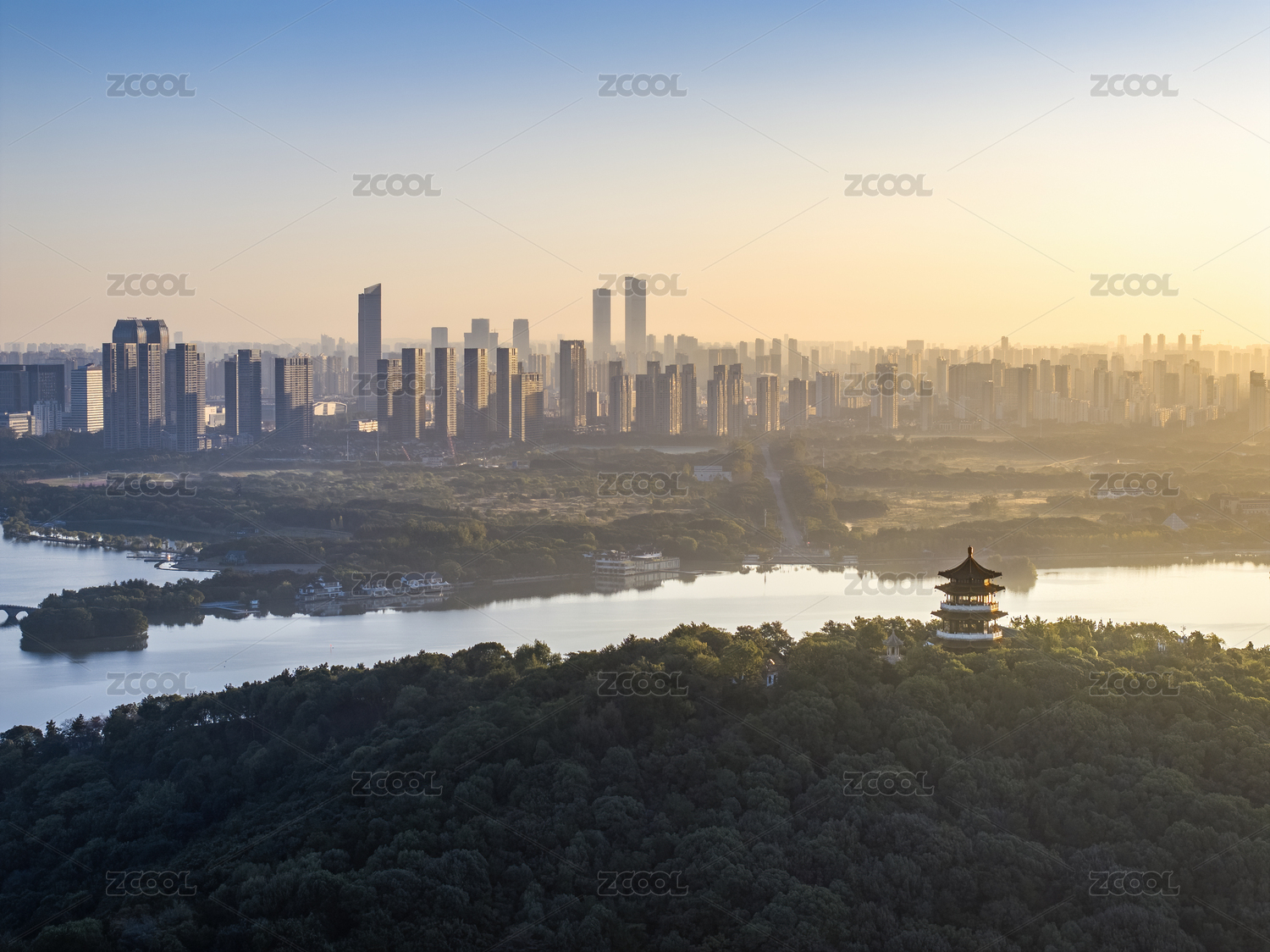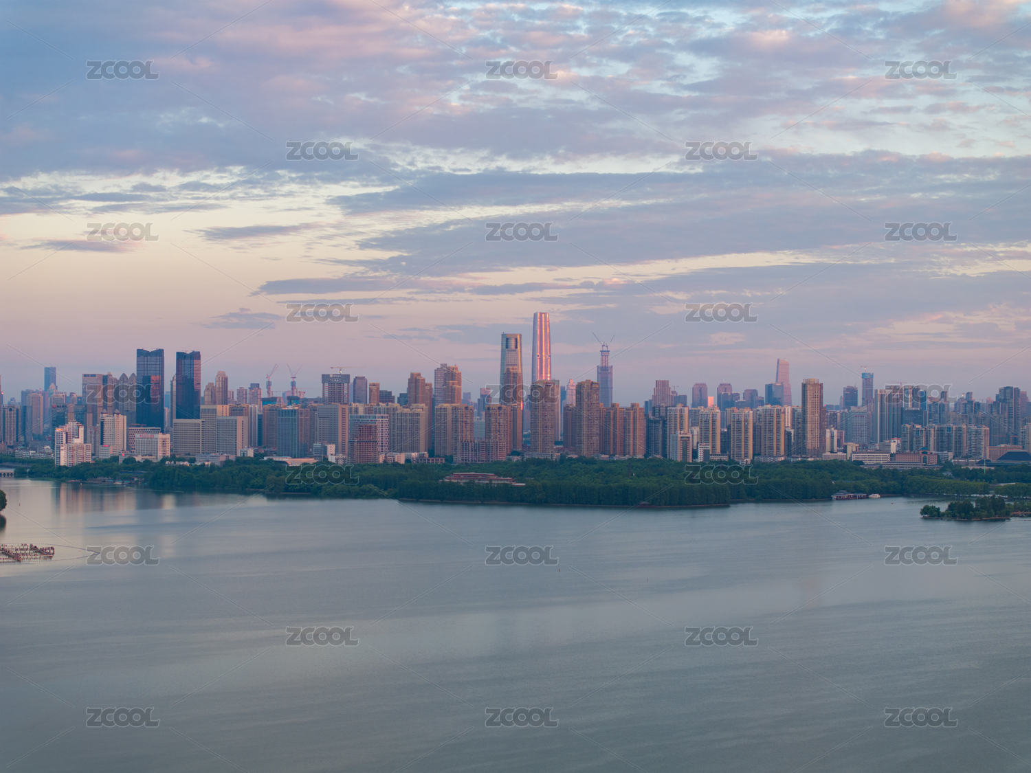 江苏省南京市长江外滩黄昏都市高楼建筑