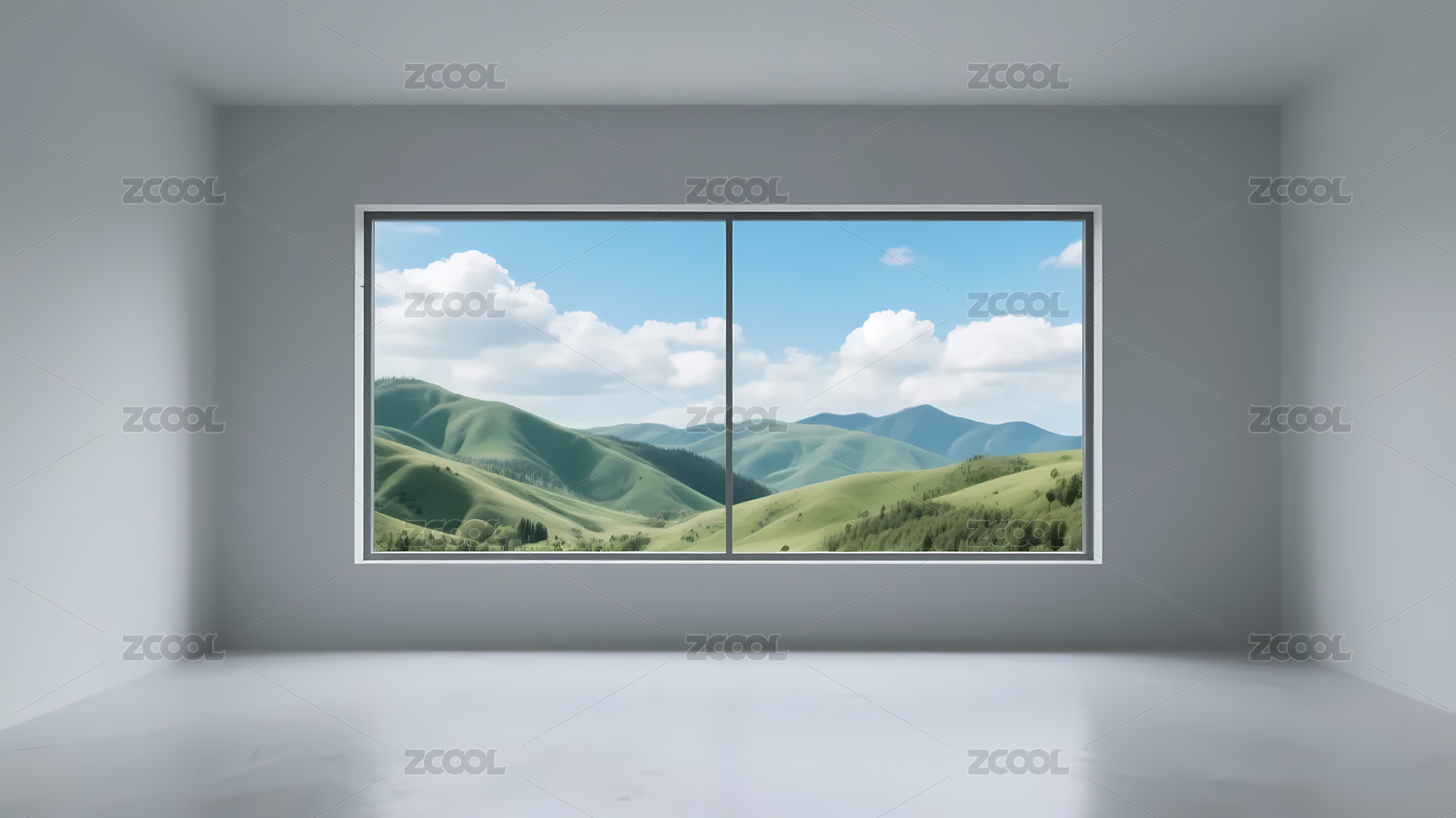 窗外的绿色山丘