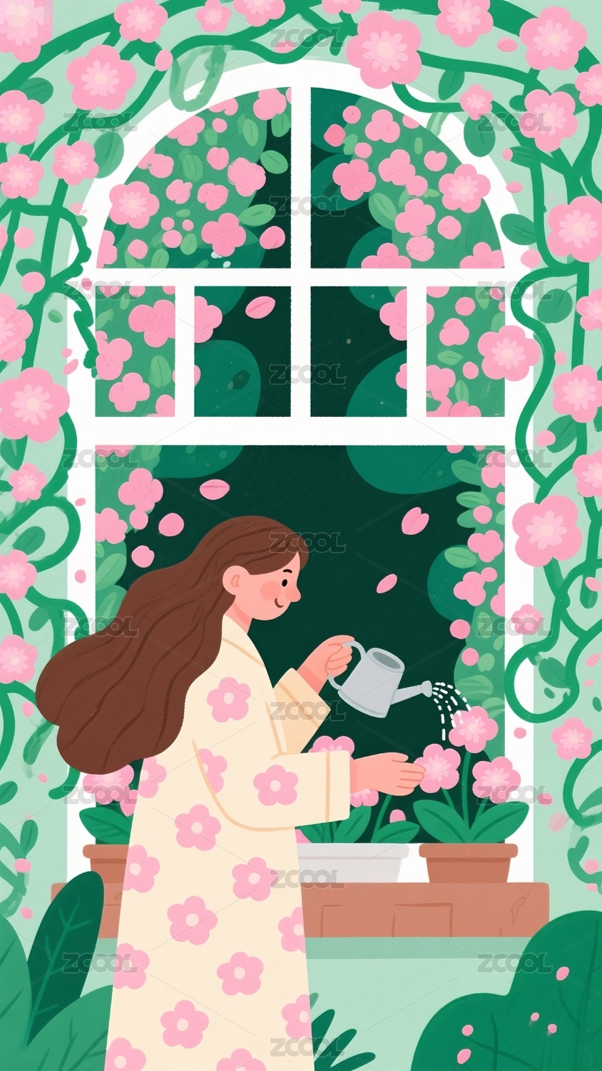少女,女王,38,38节,三八,节,节日,插画,插图,花