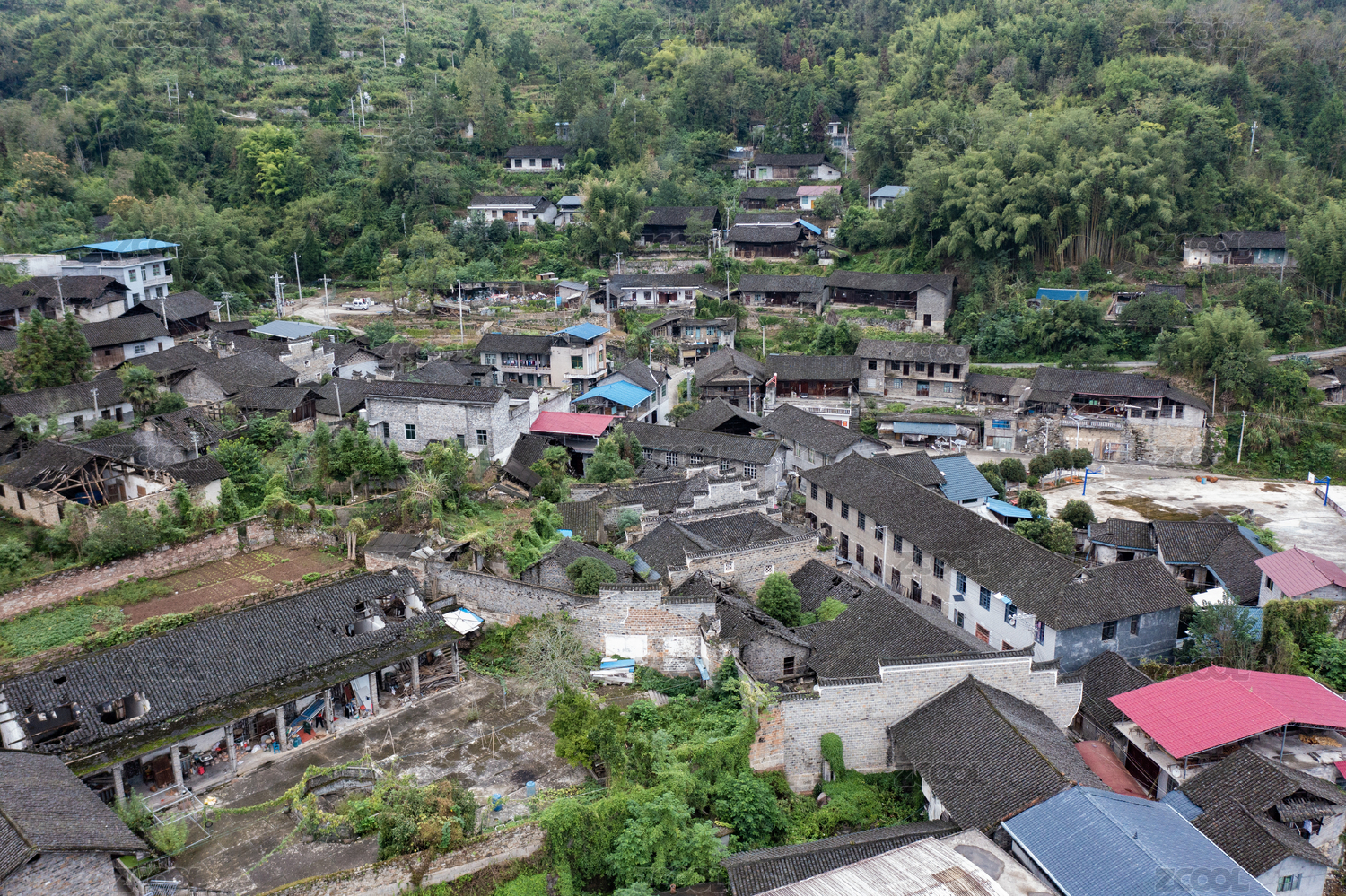 航拍湖南湘西山中的苗寨