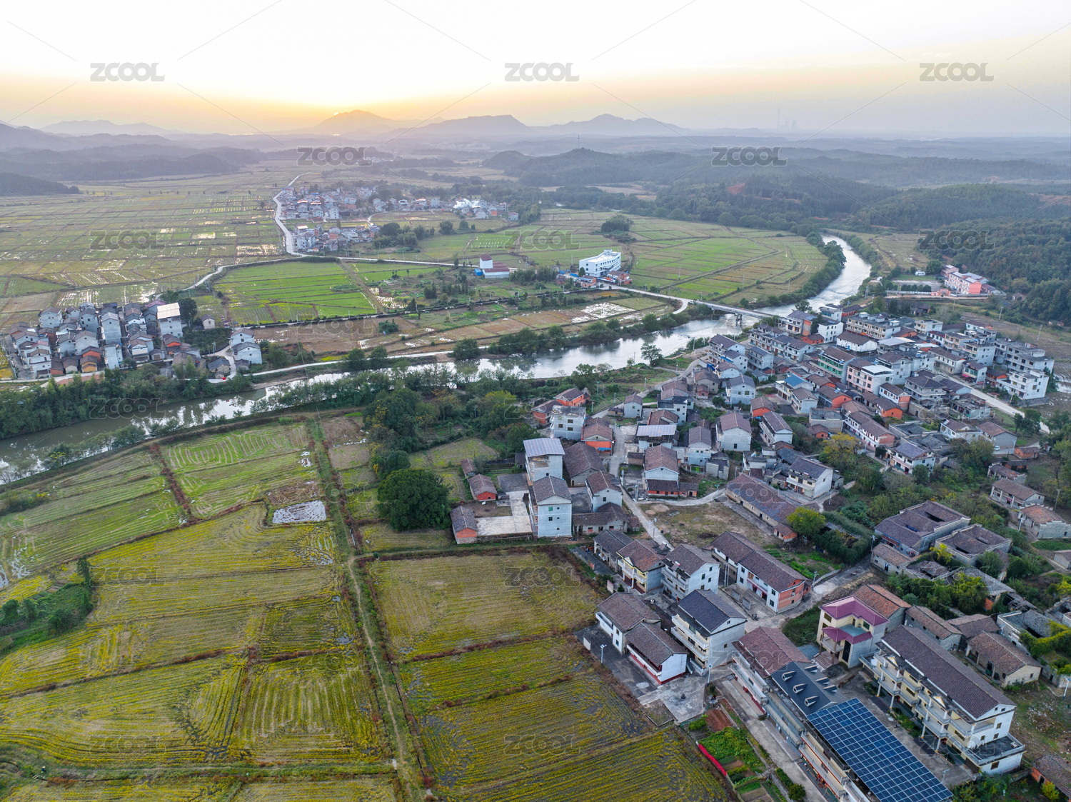 沩水,长沙,航拍,日落,夕阳,秋收,稻谷,稻田,丰收,宁乡
