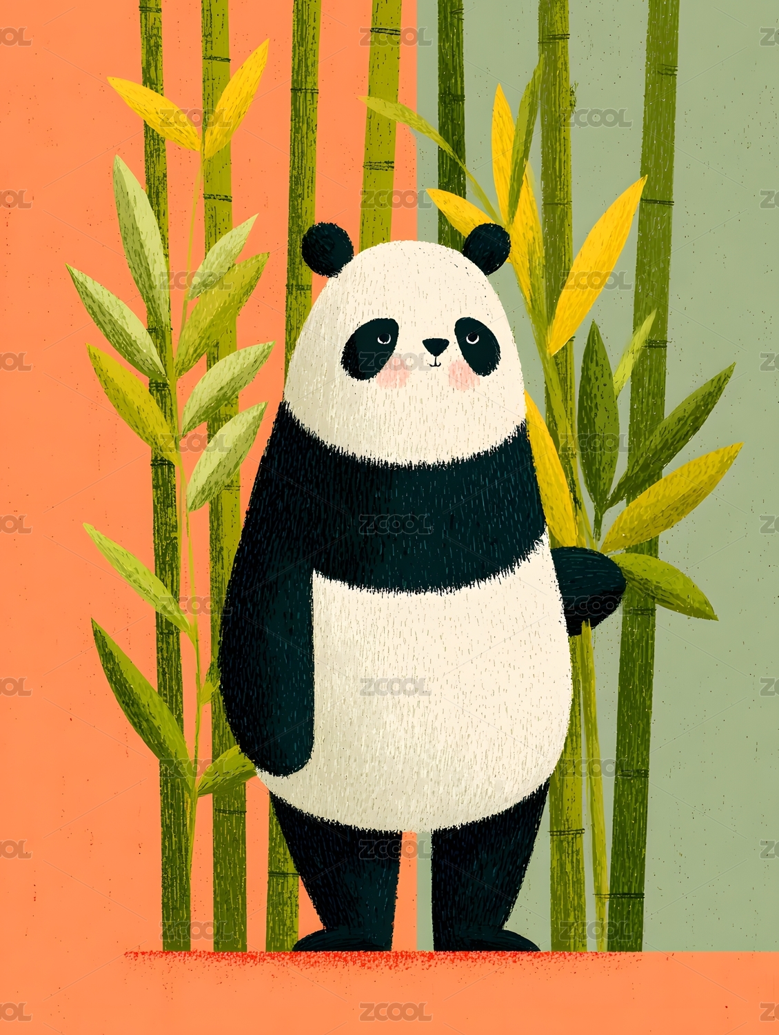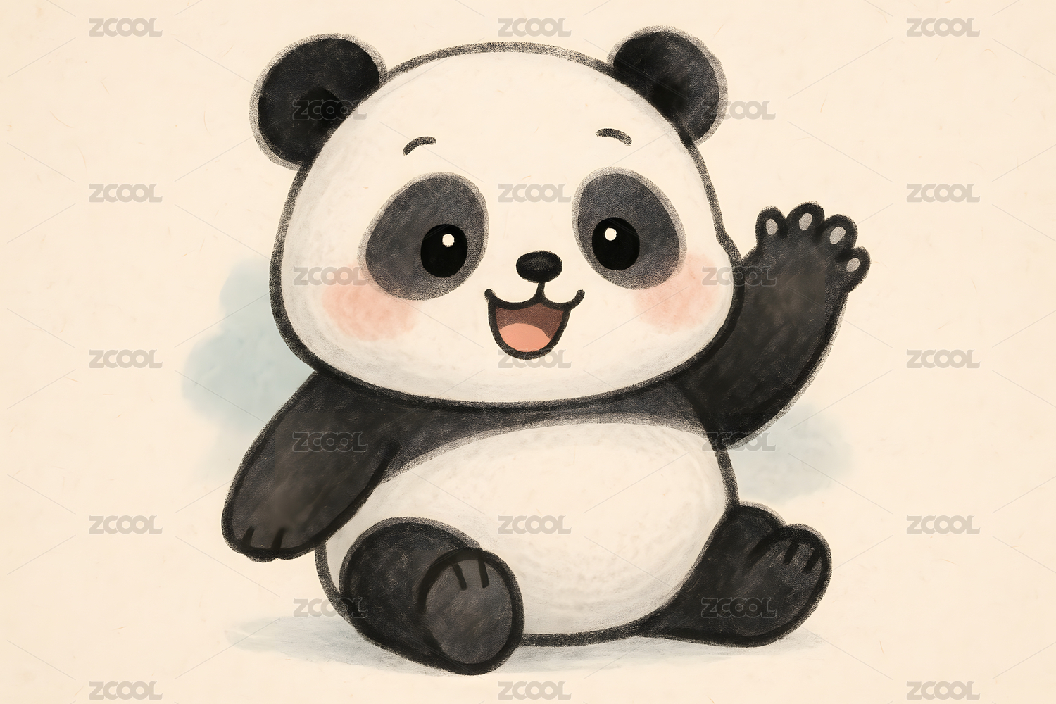 熊猫,大熊猫,卡通,可爱,动物,插画,治愈,快乐,呆萌,简约