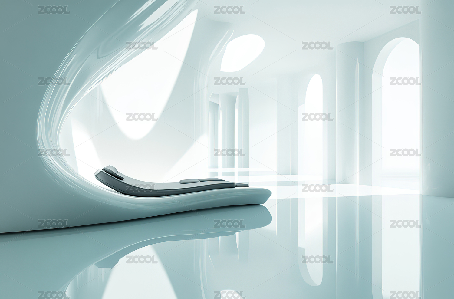 白色现代建筑室内空间设计背景