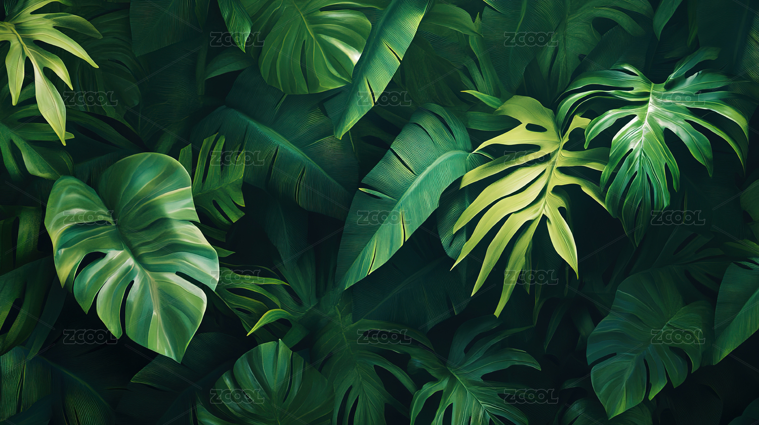 植物叶子图案夏季绿色自然美丽设计壁纸背景