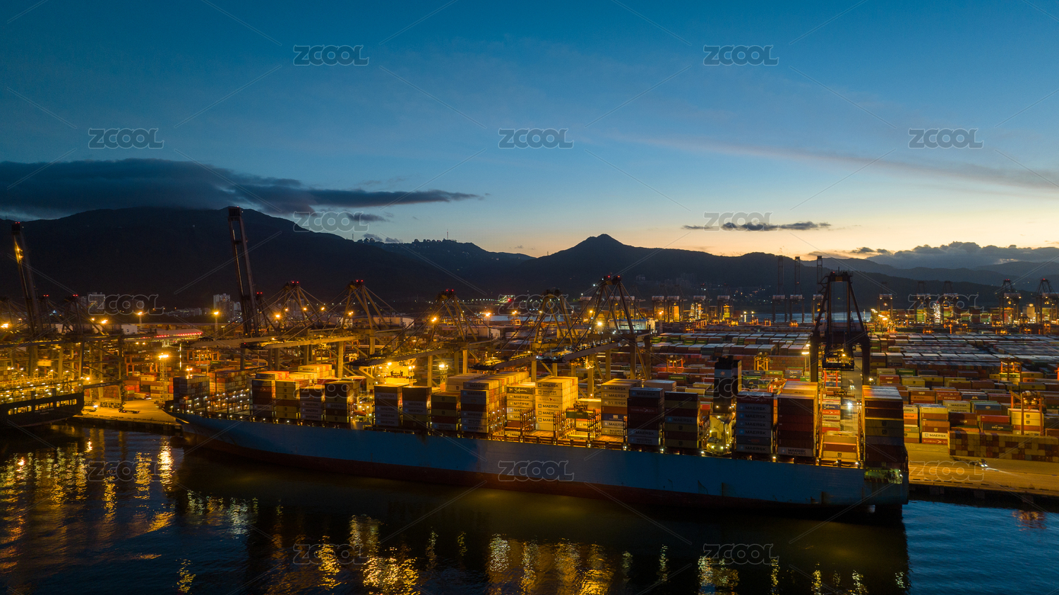 深圳南山区赤湾港货柜集装箱码头夜景