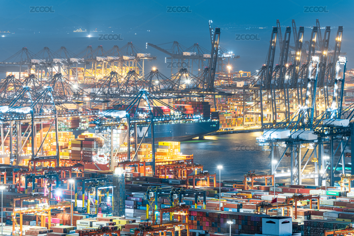 上海洋山深水港集装箱货运码头夜景建筑风光
