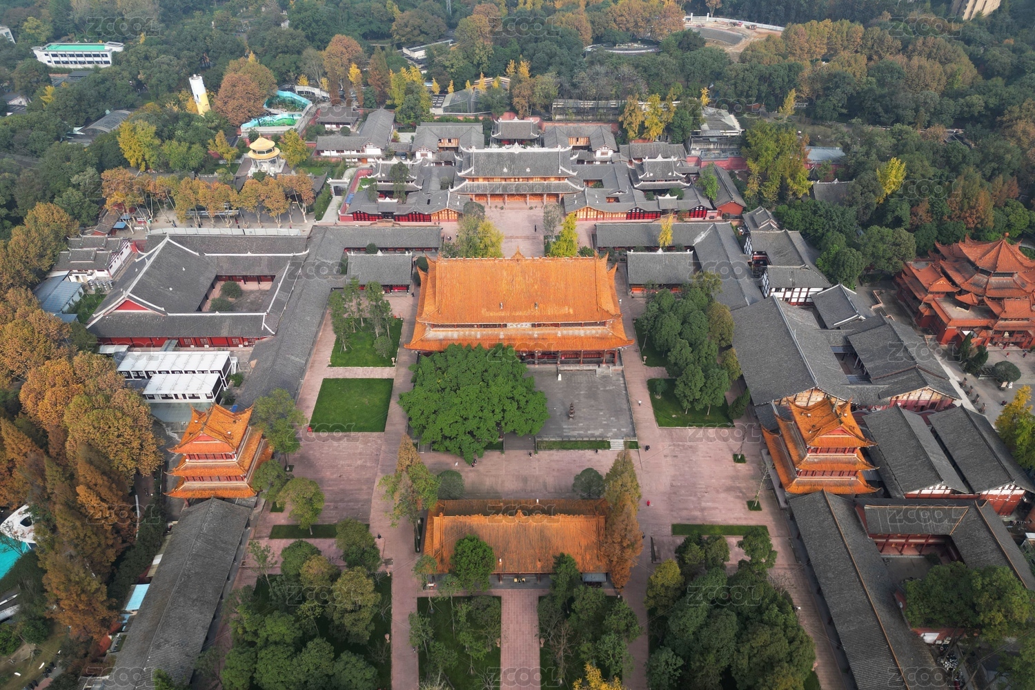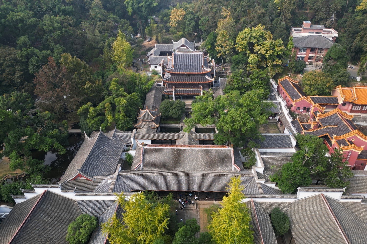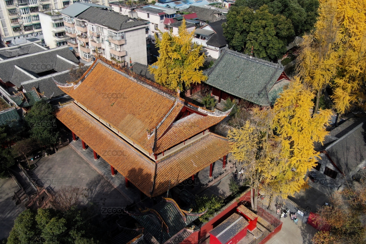 阆中古城张飞庙(汉桓侯祠)白昼晴天航拍