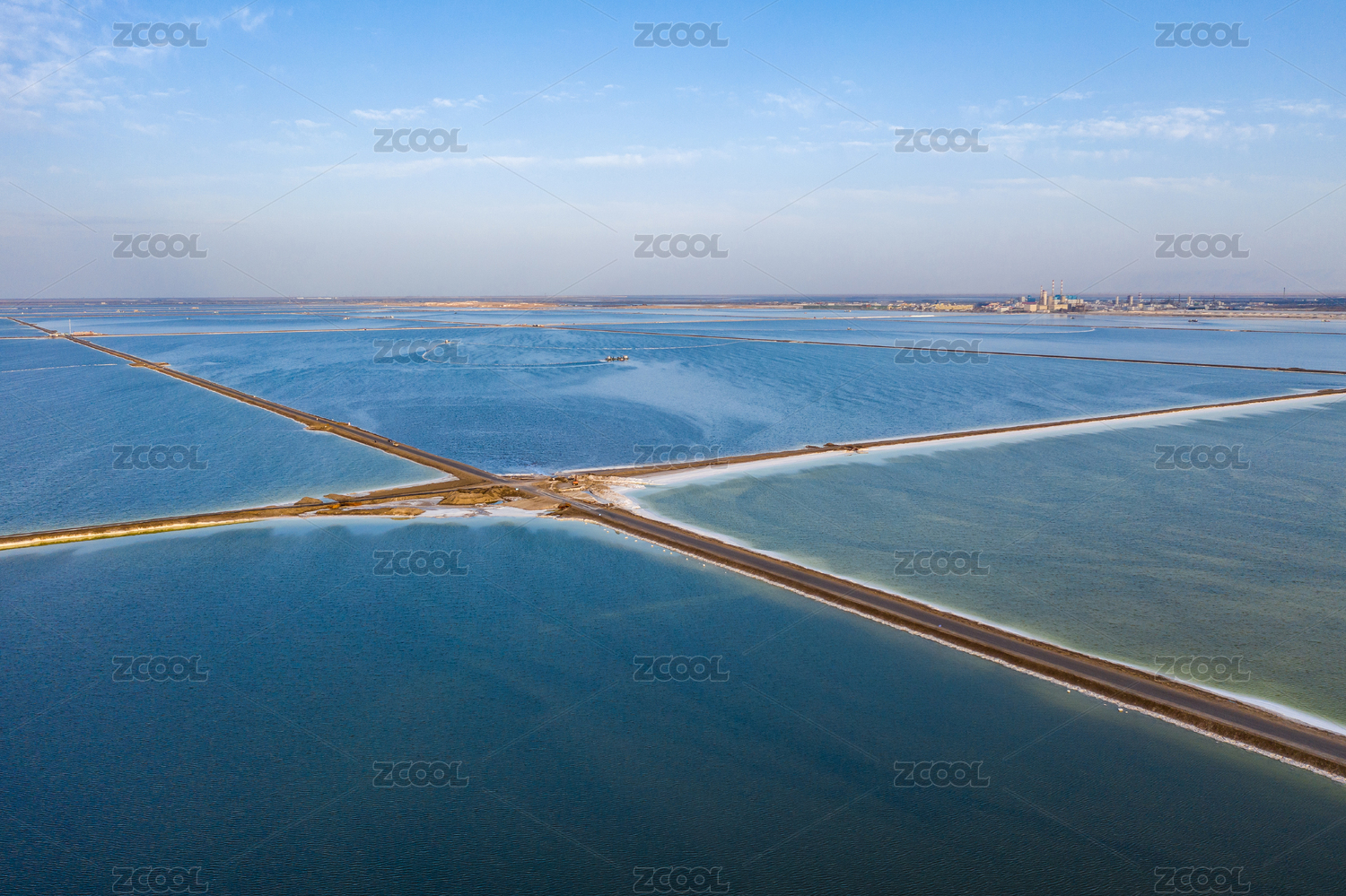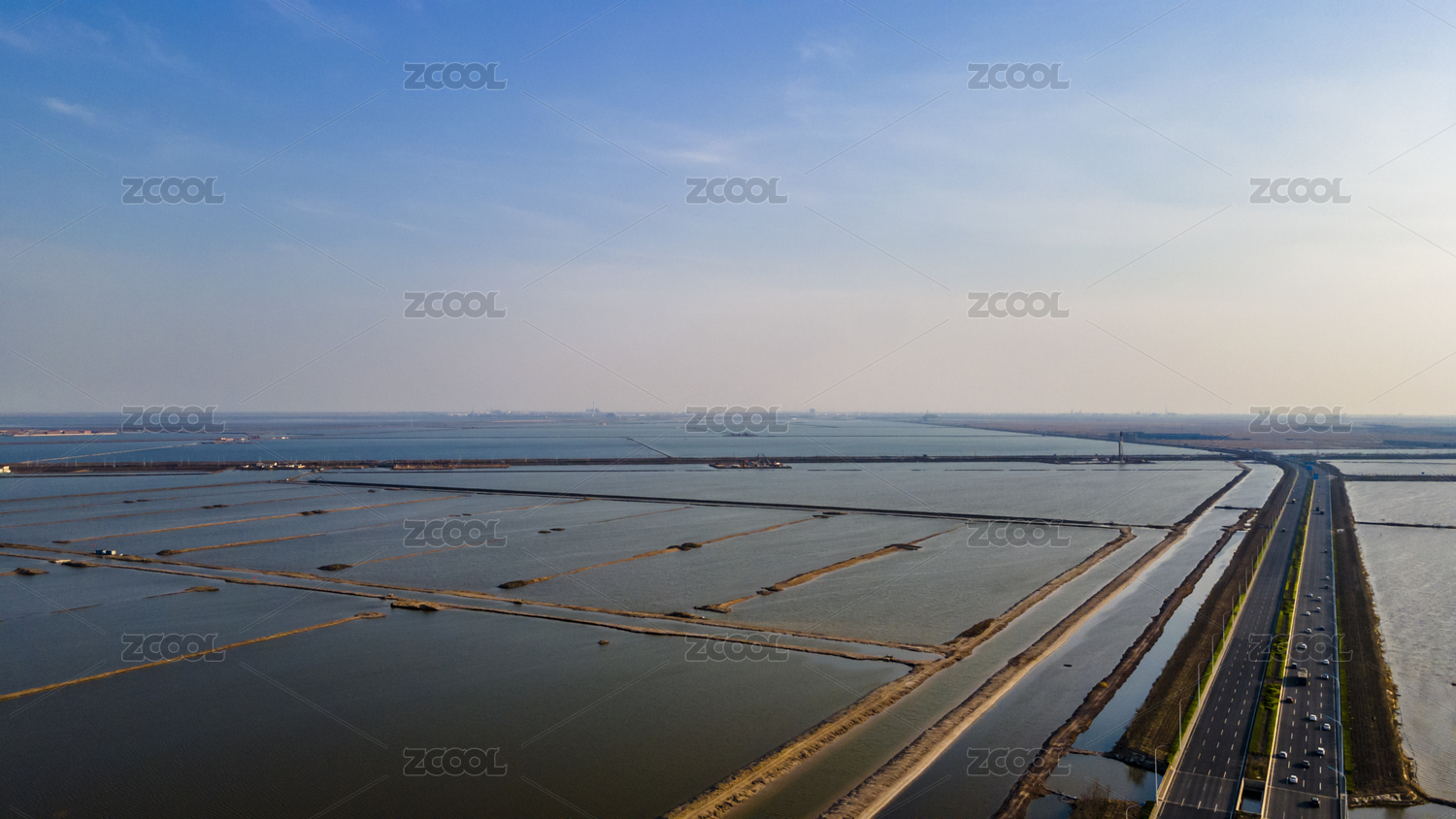 天津滨海新区塘沽盐场的中央大道航拍海景图