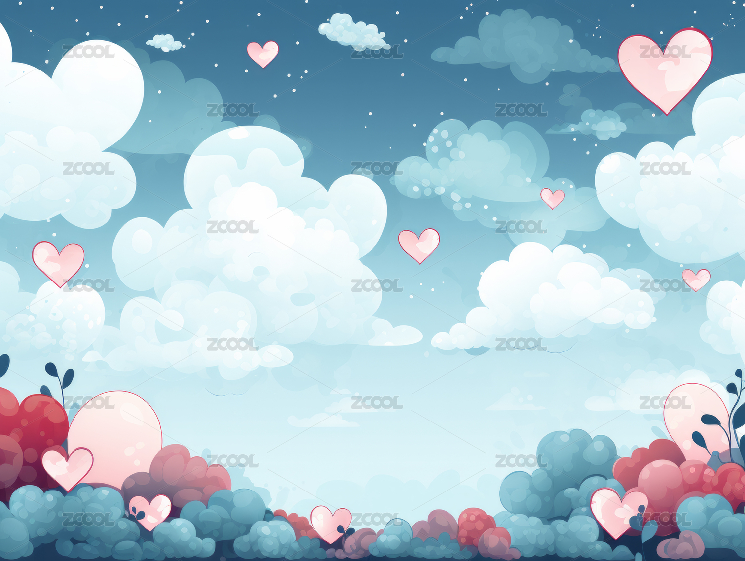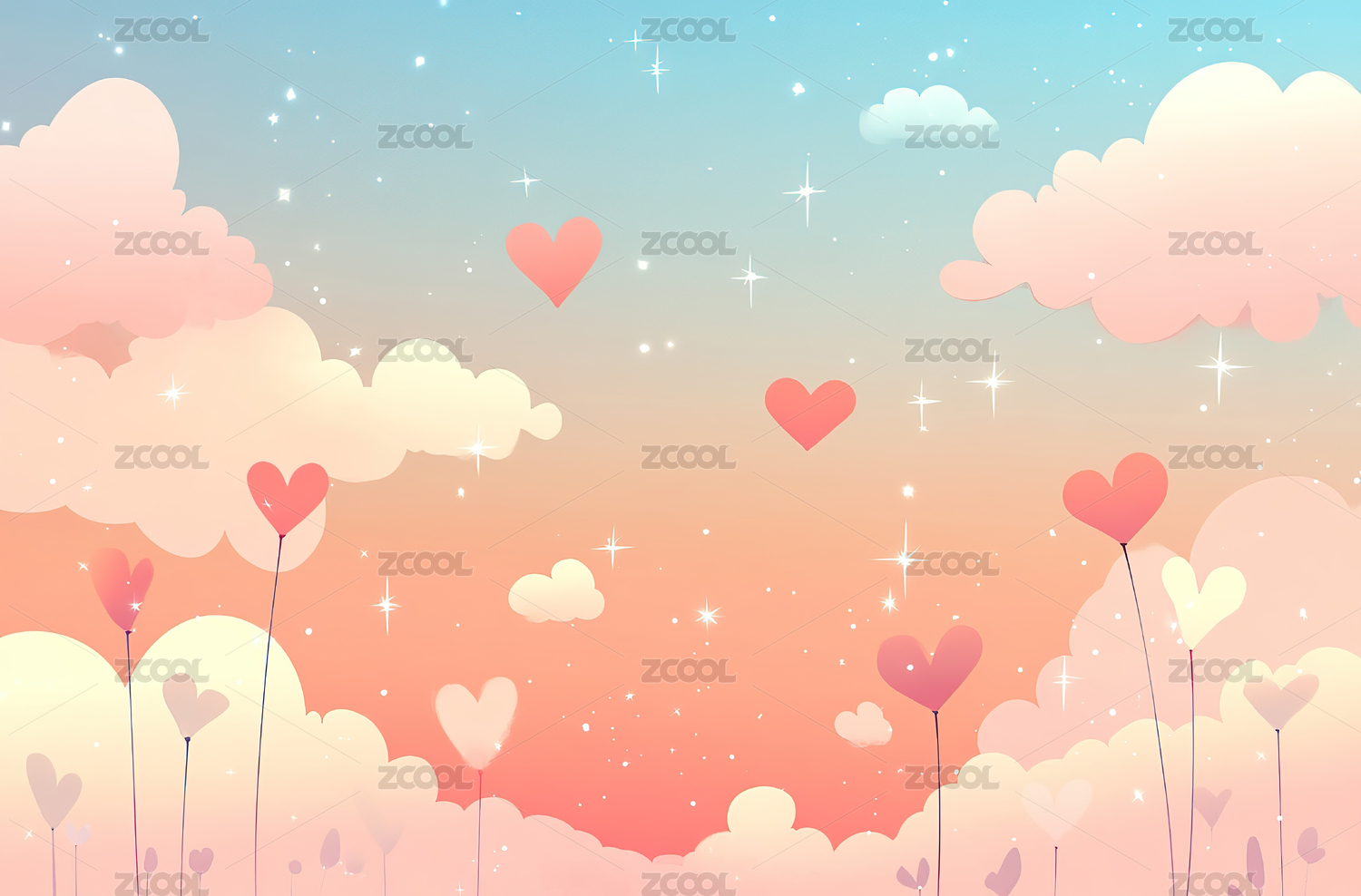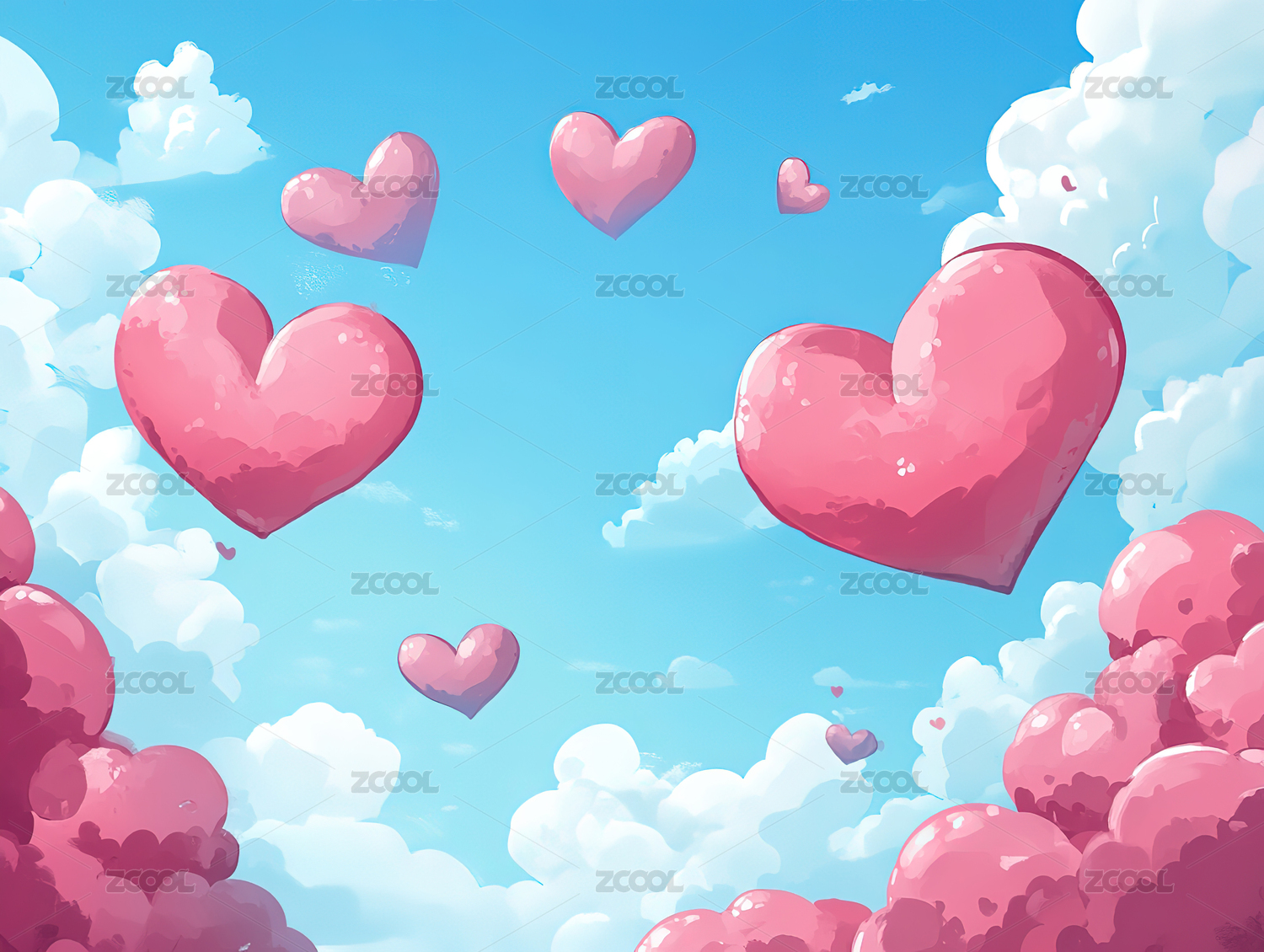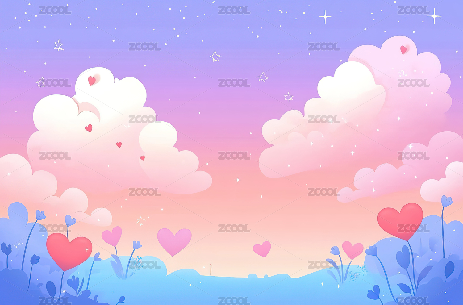 爱心,满天,浪漫,插图,星空,粉色,心形,景象,白云,蓝天