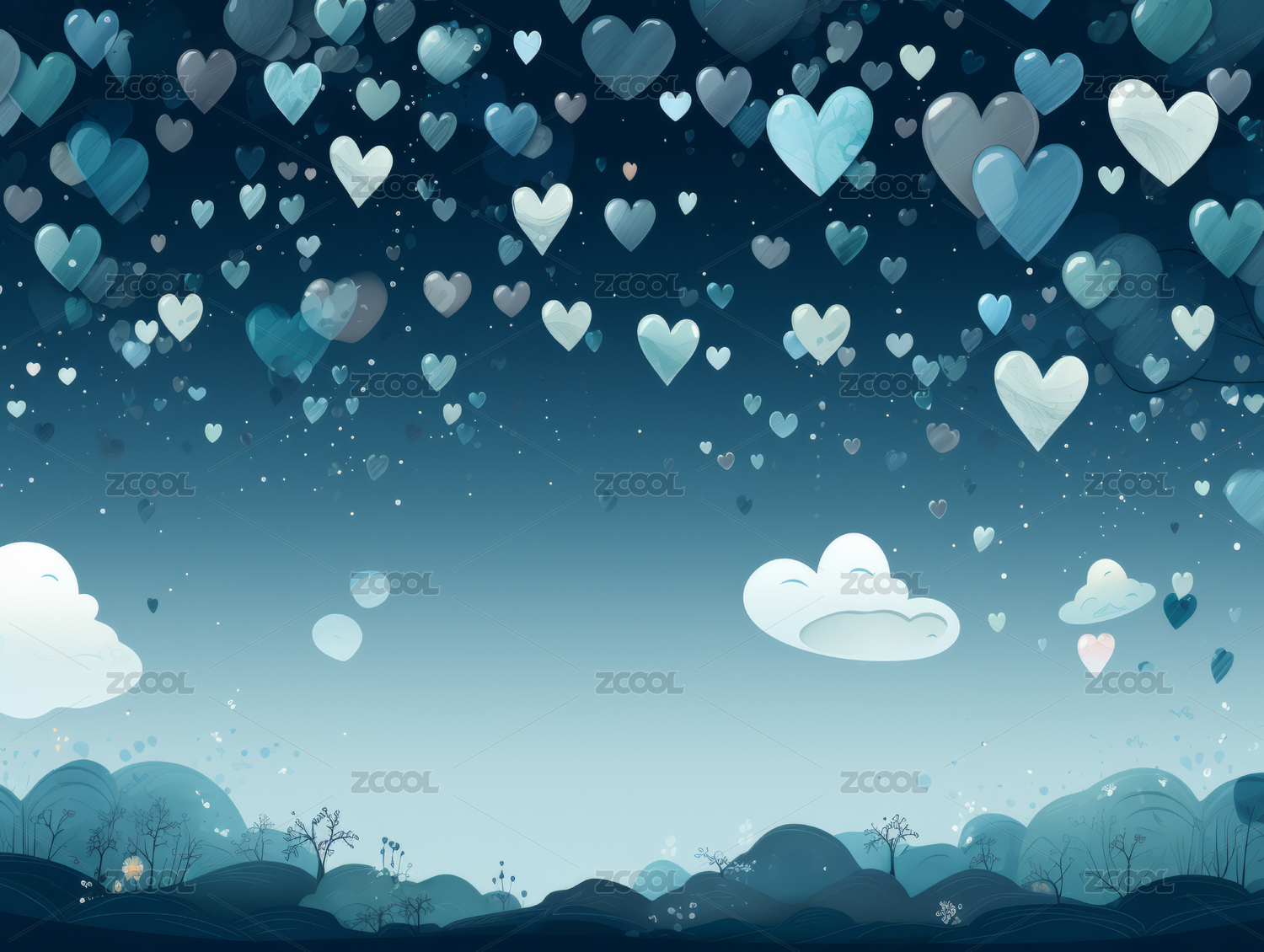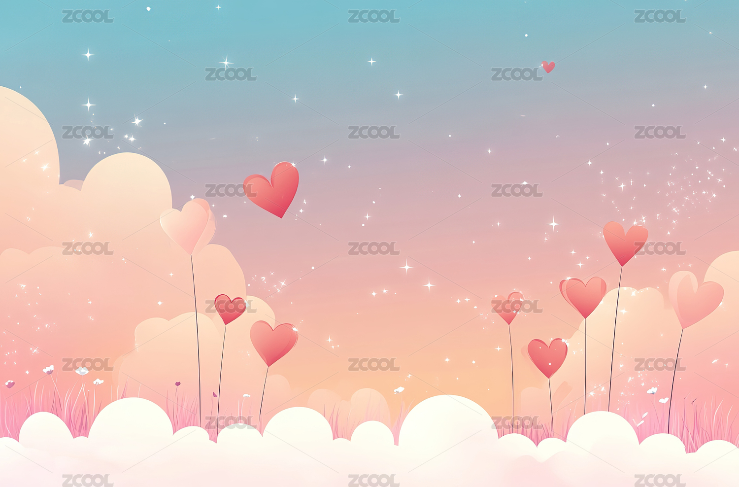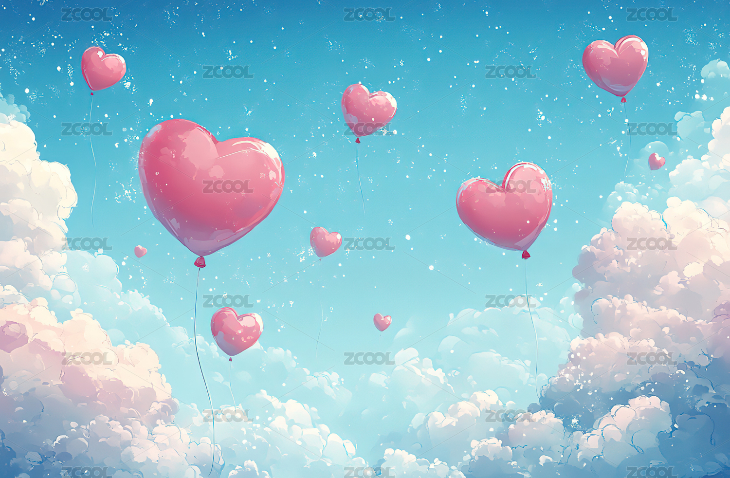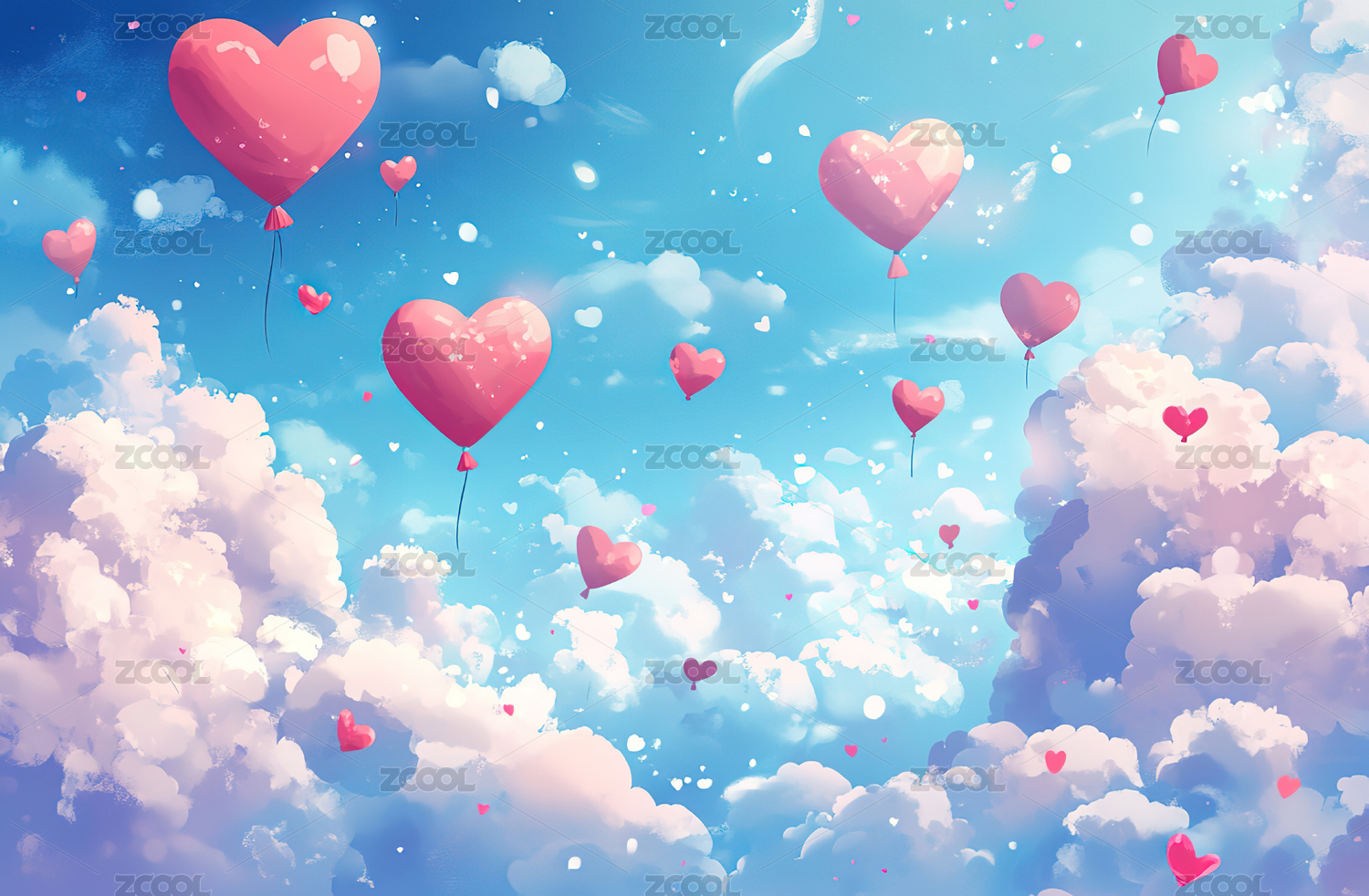 爱心,满天,浪漫,插图,星空,粉色,心形,景象,白云,蓝天