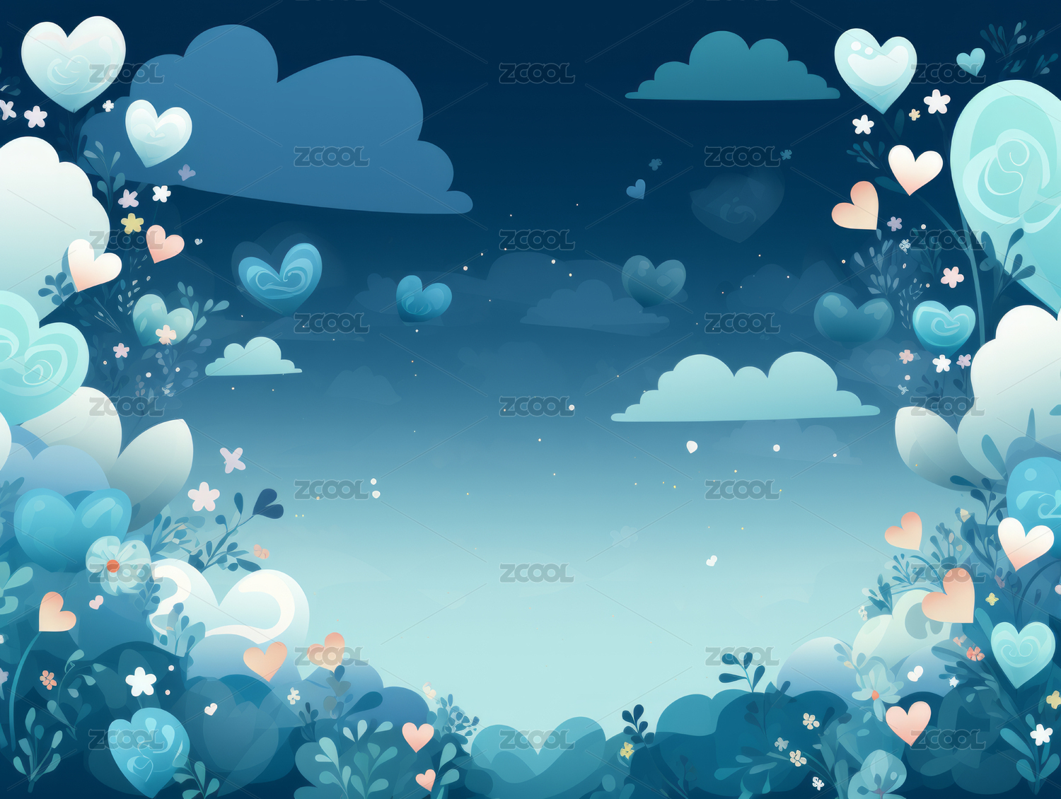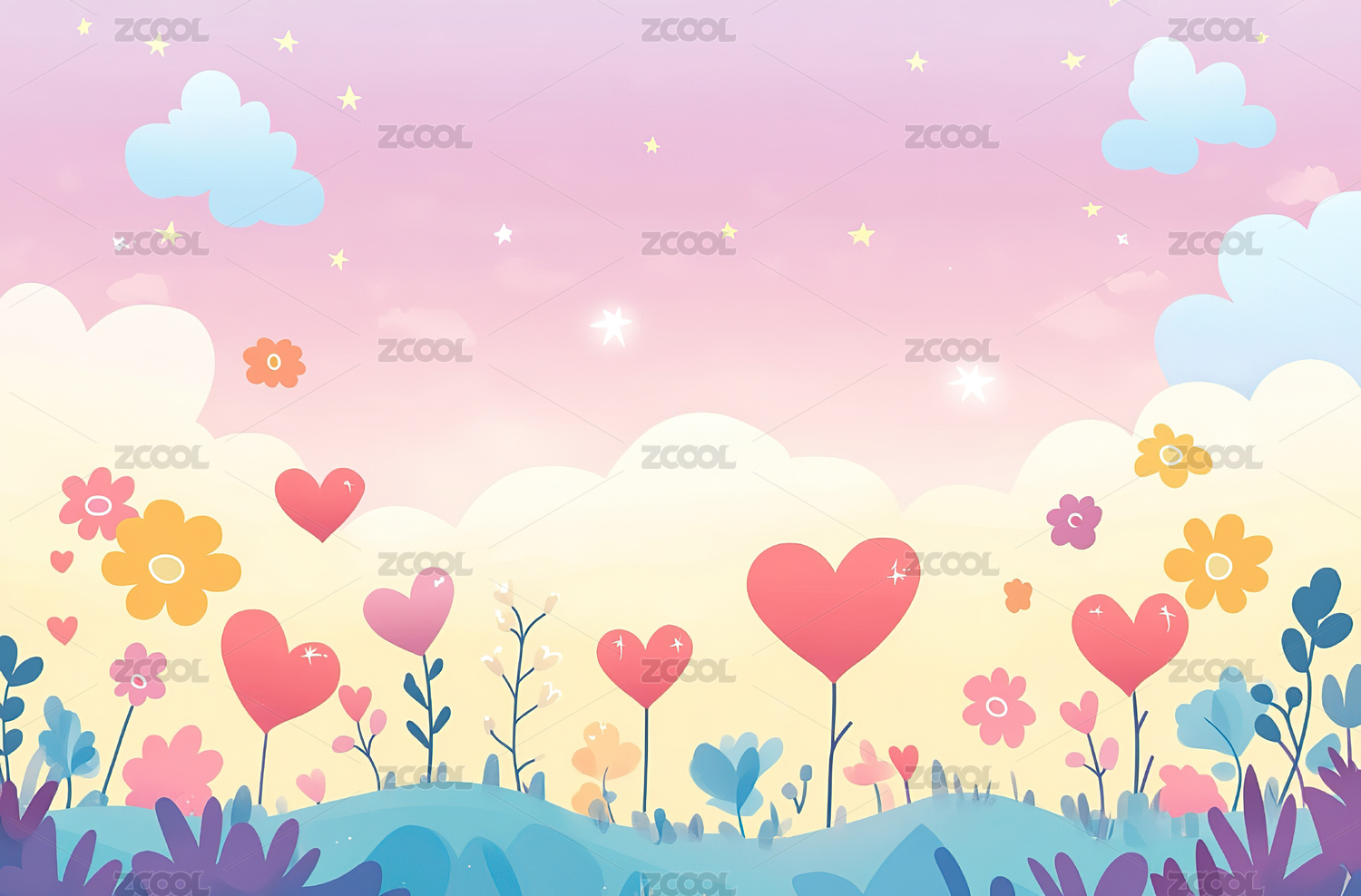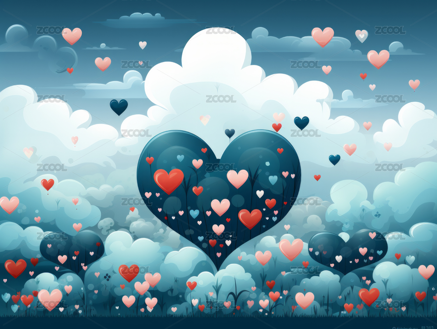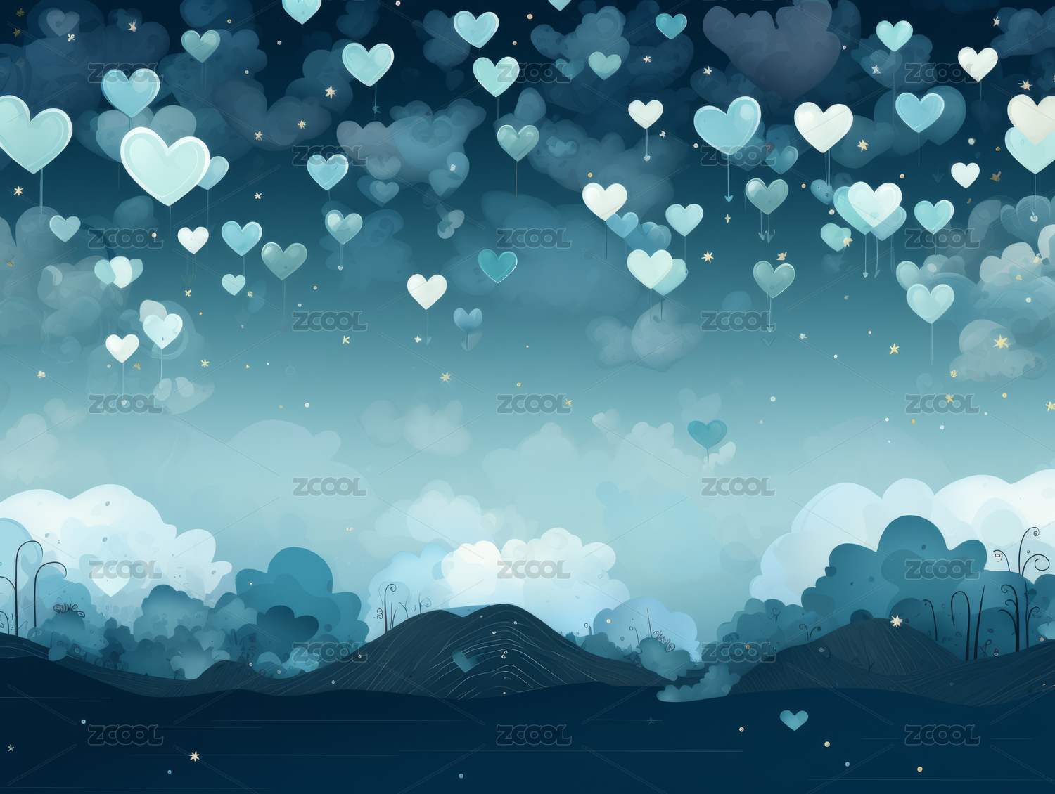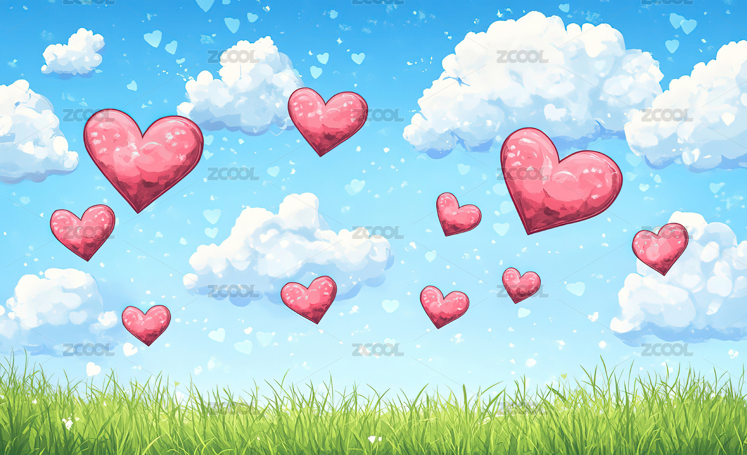 爱心,满天,浪漫,插图,星空,粉色,心形,景象,白云,蓝天