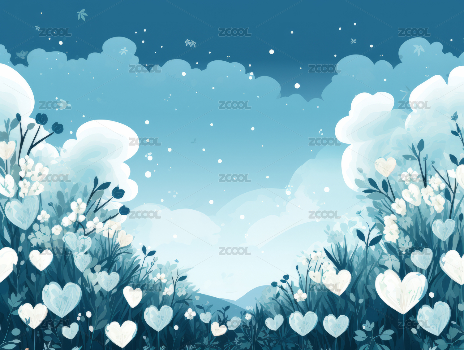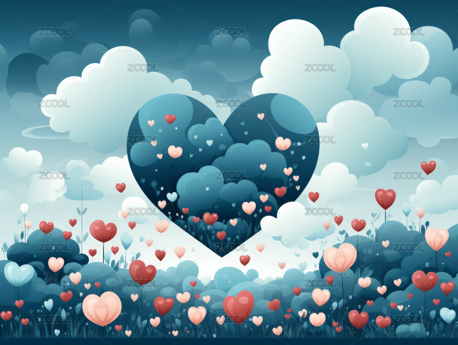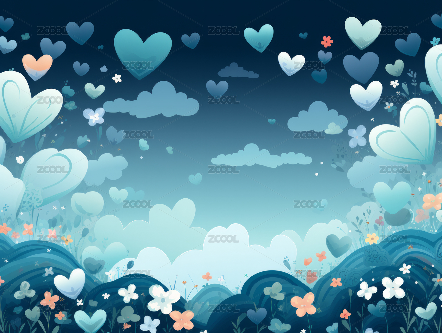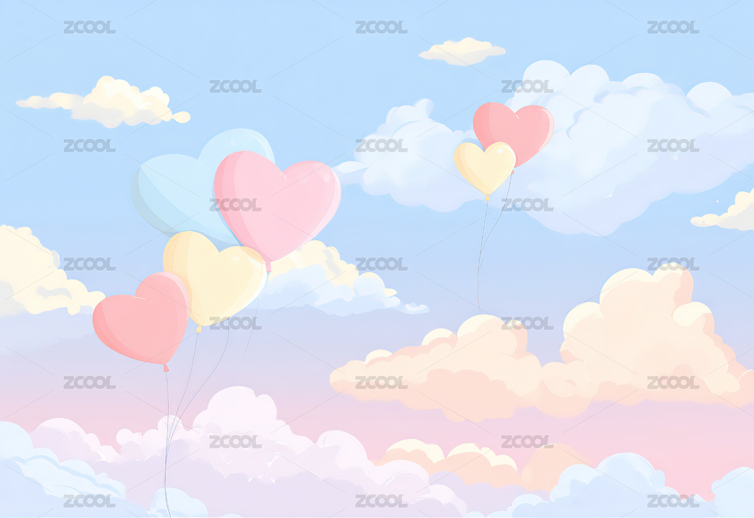 爱心,满天,浪漫,插图,星空,粉色,心形,景象,白云,蓝天