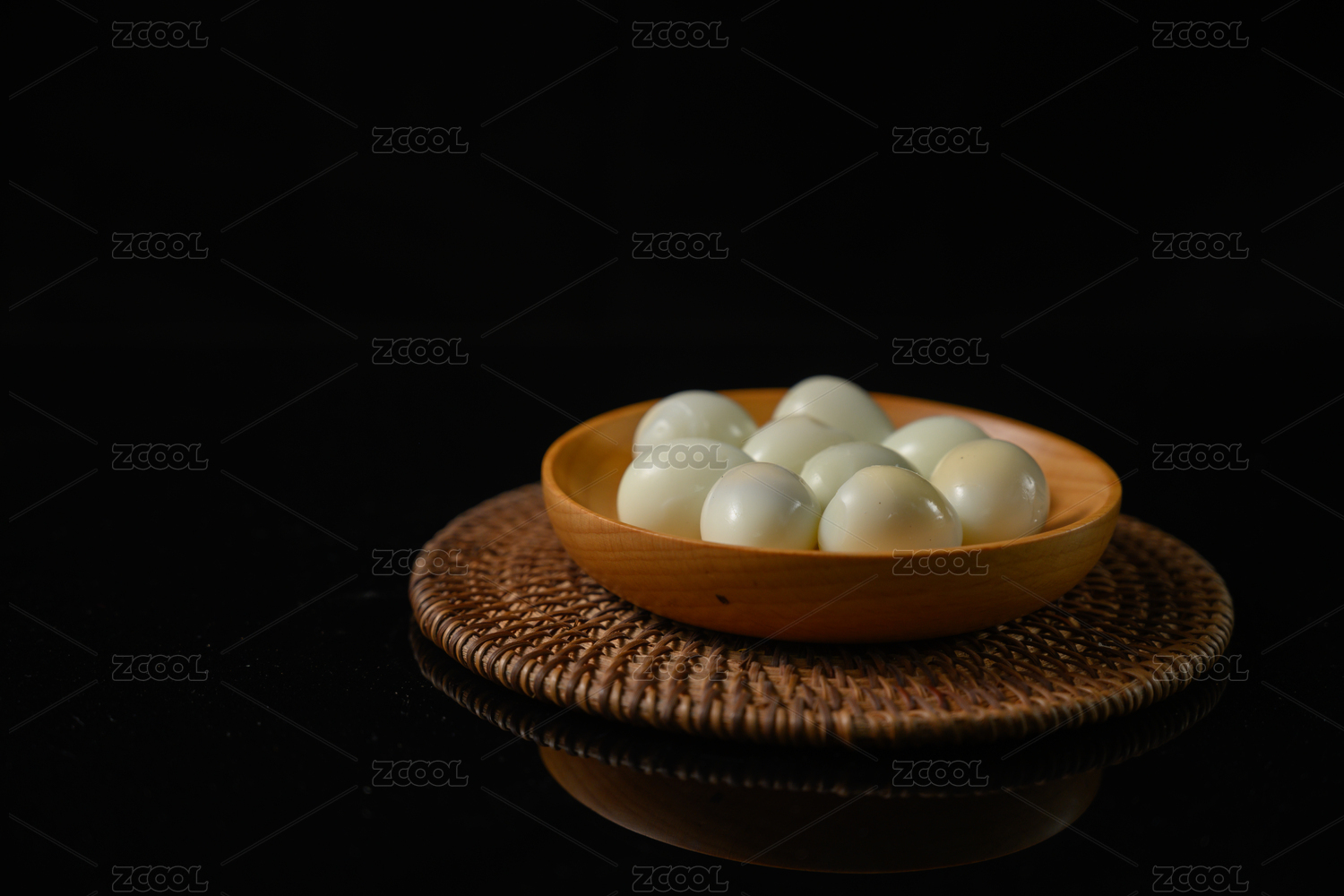 木纹背景上摆放的速冻汤圆