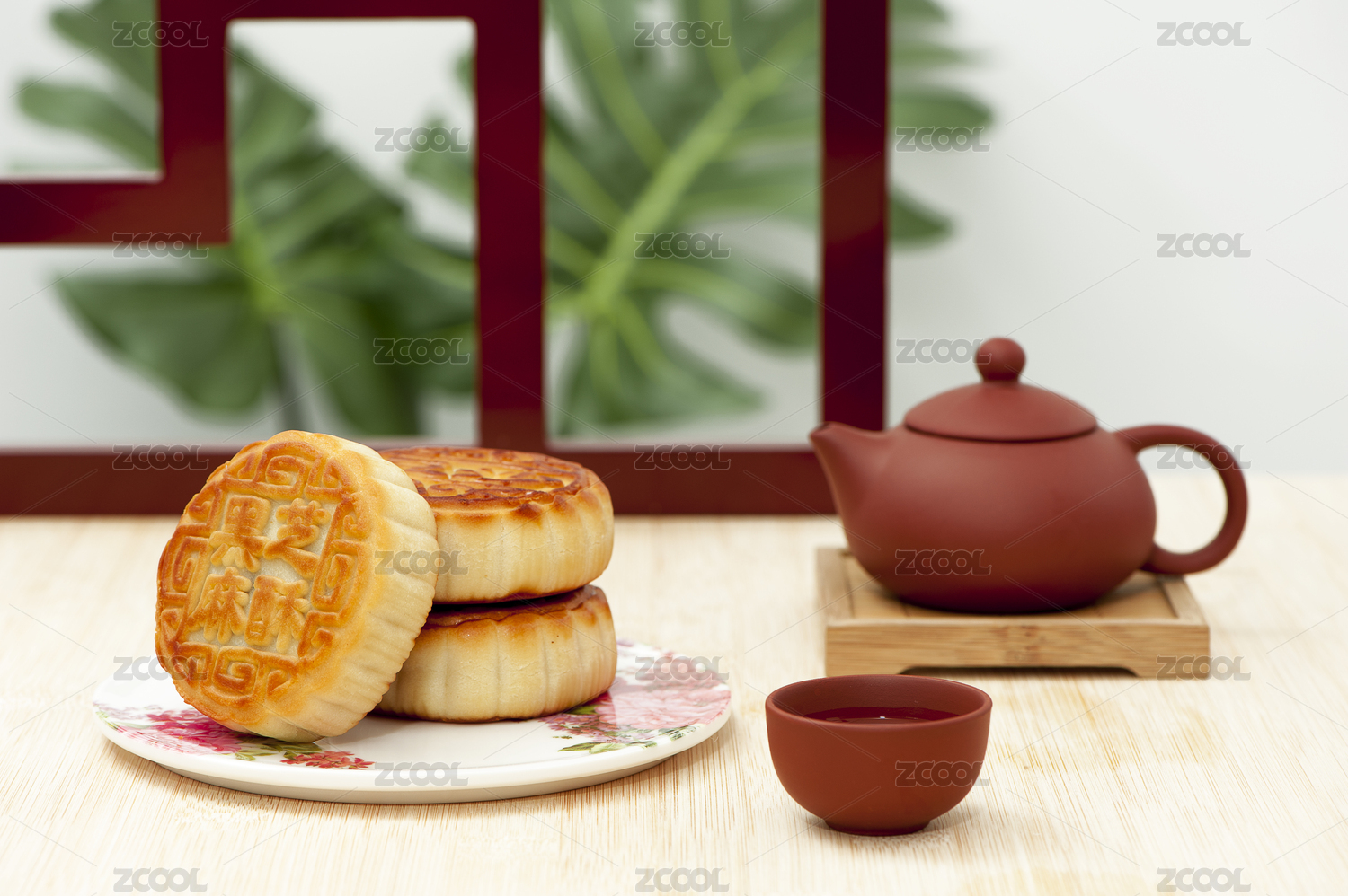 月饼,中秋节,传统,自制,式样,黄色,室内,特写,无人,茶壶
