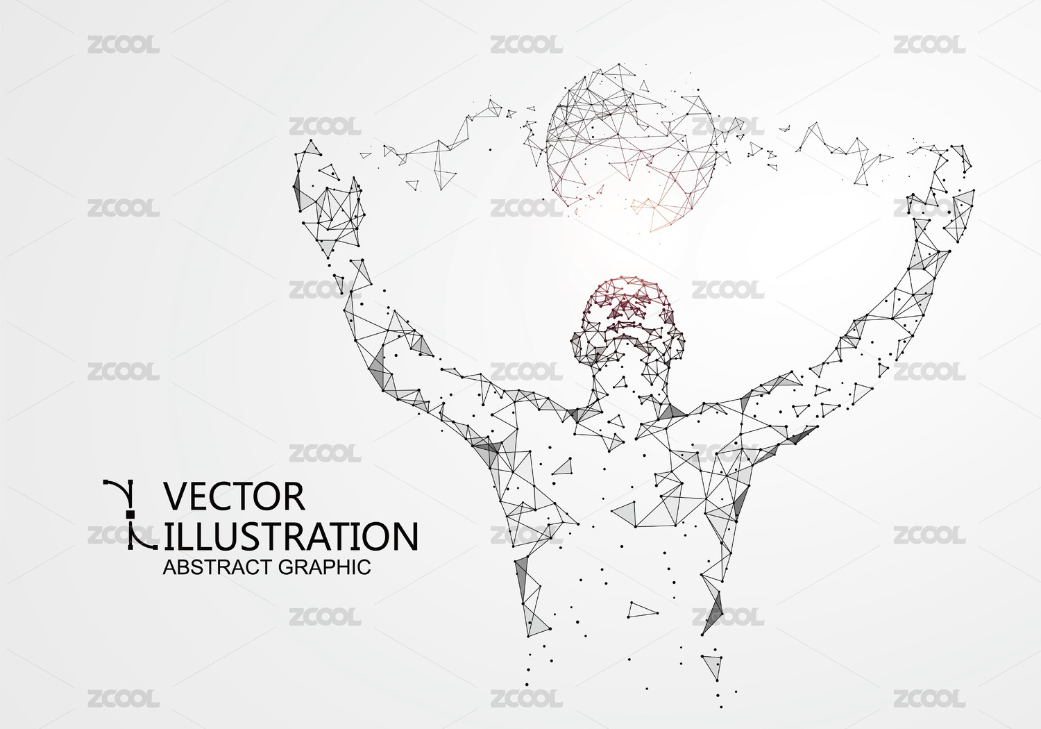 一个封闭在球体内的虚拟的人,点与线条连接而成,象征着人工智能的意义。