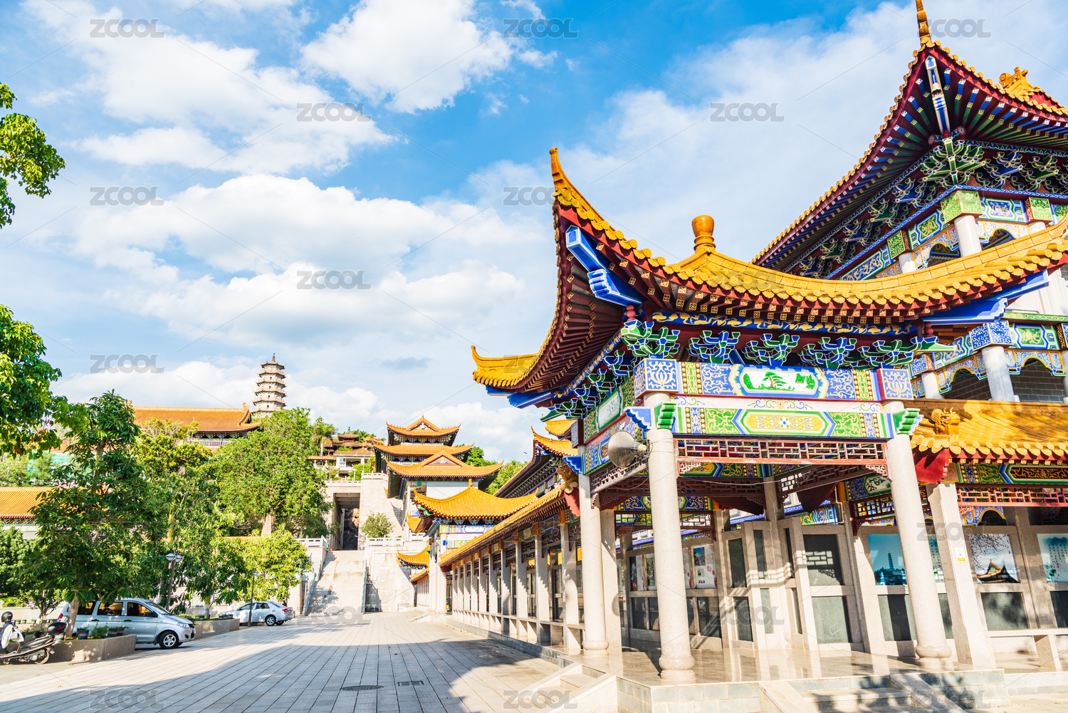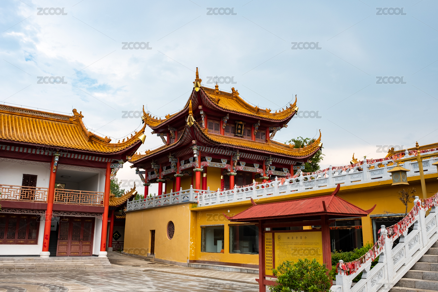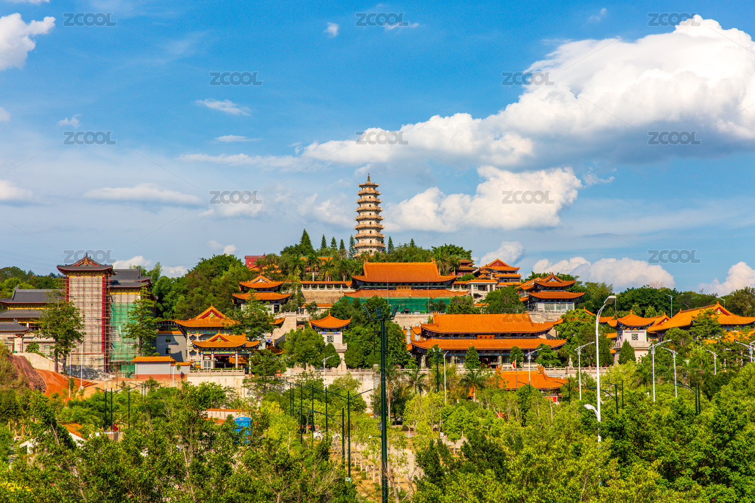广东,梅州,千佛塔寺,寺庙,古迹,夏天,多云,晴天,琉璃瓦,阳光